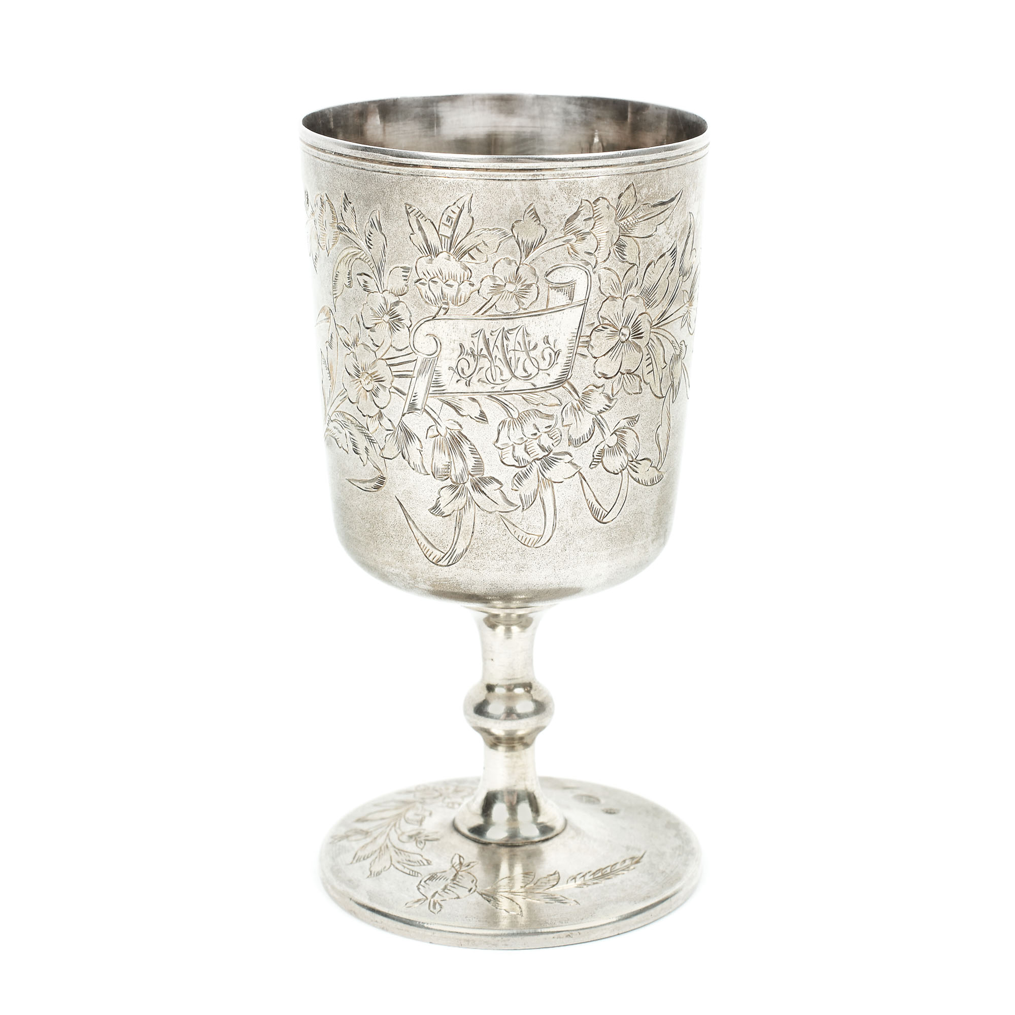 149. Pocal din argint, gravat cu monograma MA și decor floral, cca. 1844-1923