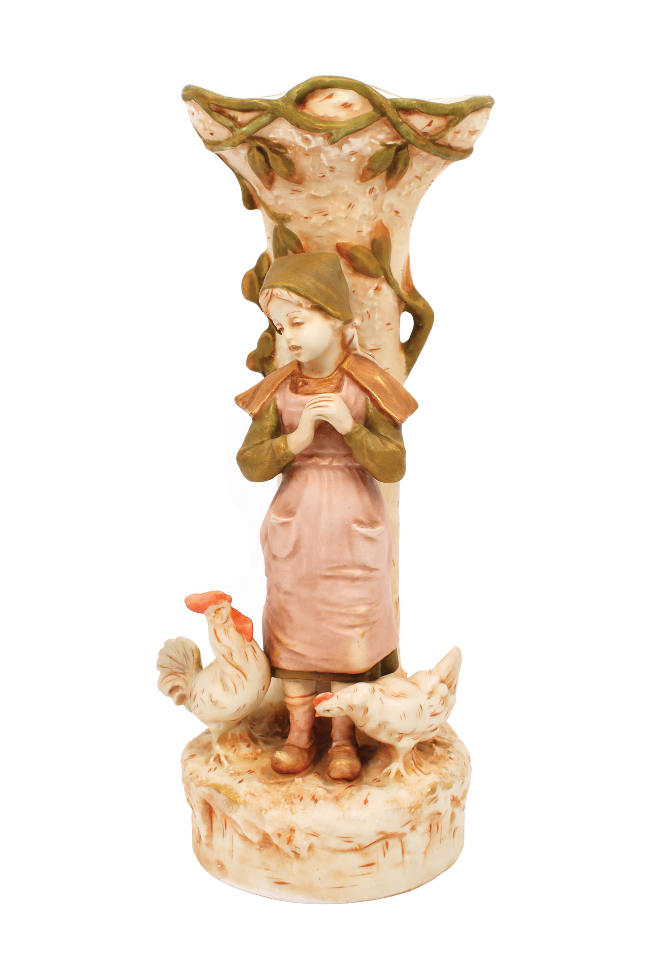 238. Vas decorativ din porțelan Royal Dux, ornat cu fetiță și găini, 1900-1910