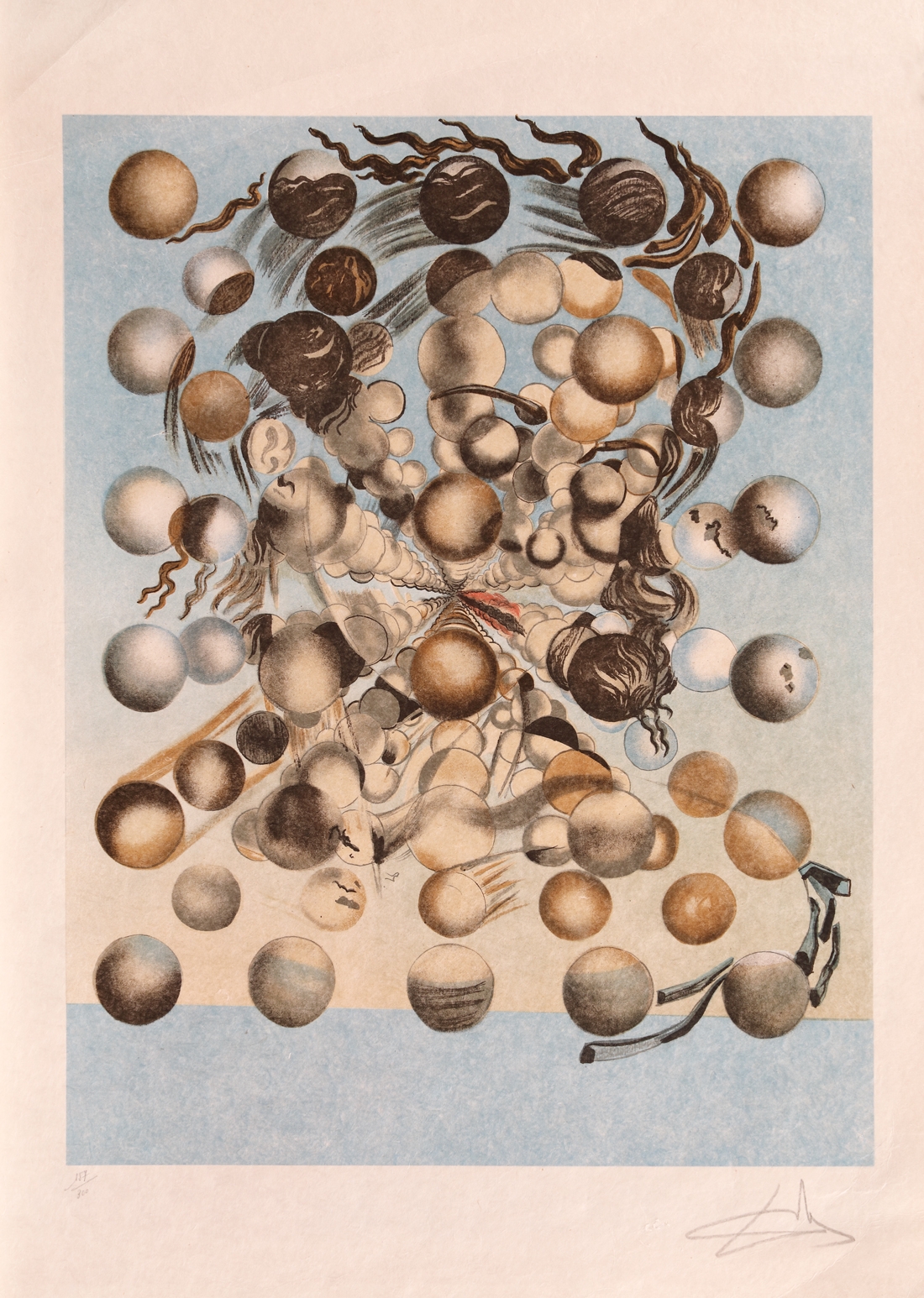 semnat dreapta jos, sub cadru, în creion, ”Dali”; numerotat stânga jos, sub cadru, în creion, ”157/300”