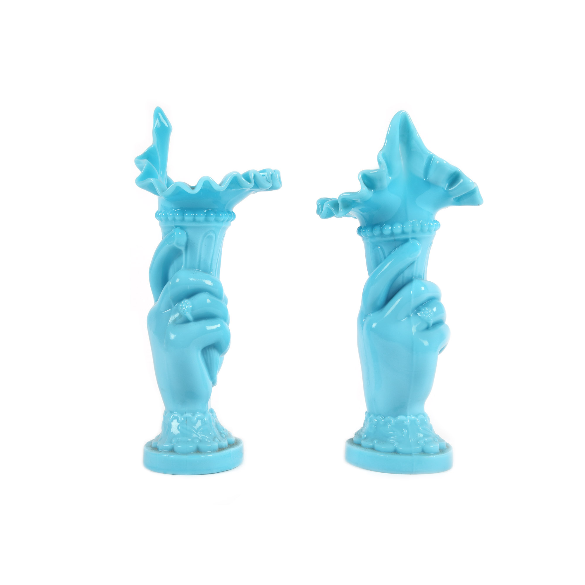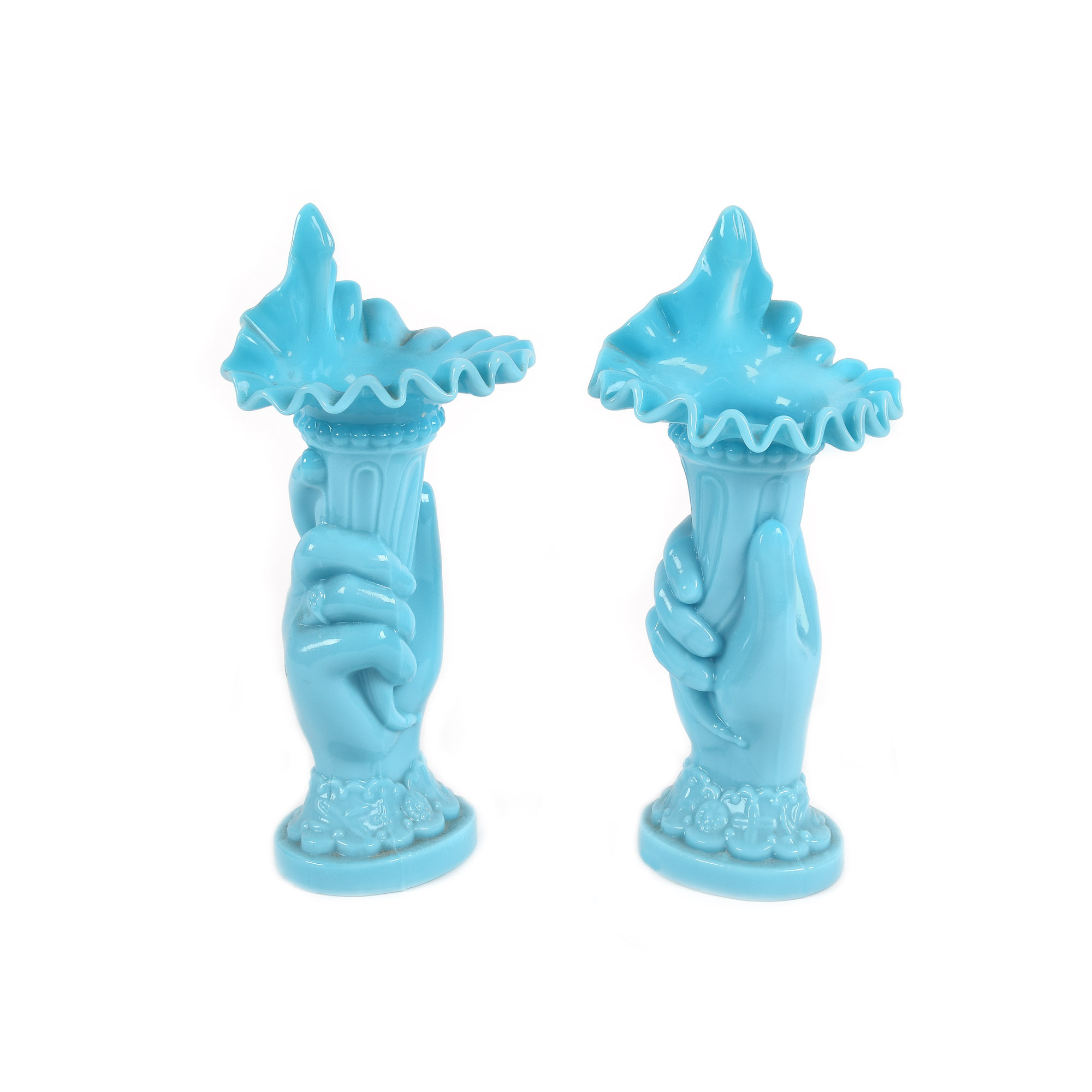 71. "Jack in the Pulpit" - pereche de vase Vallérysthal & Portieux, din sticlă opalină, provine din colecţia Lucrezia și Ion Pacea