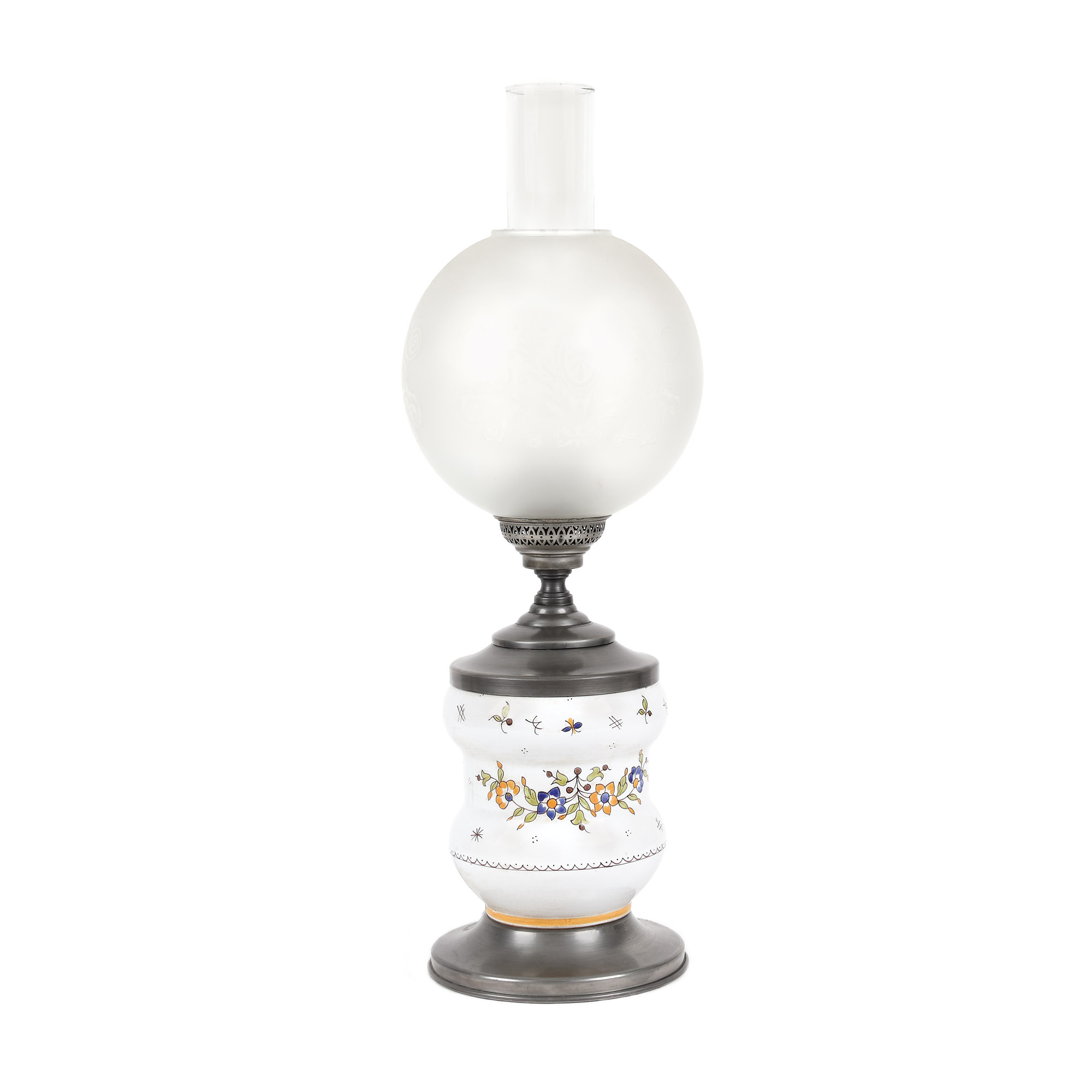 76. Lampă din ceramică cu decor floral, sec. XIX, provine din colecția Lucrezia și Ion Pacea