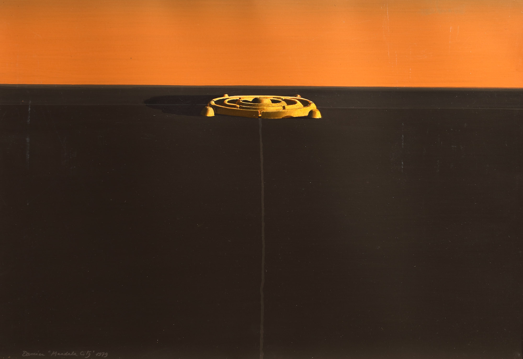 semnat, datat și intitulat stânga jos, în creion, "Damian, Mandala City, 1979"
