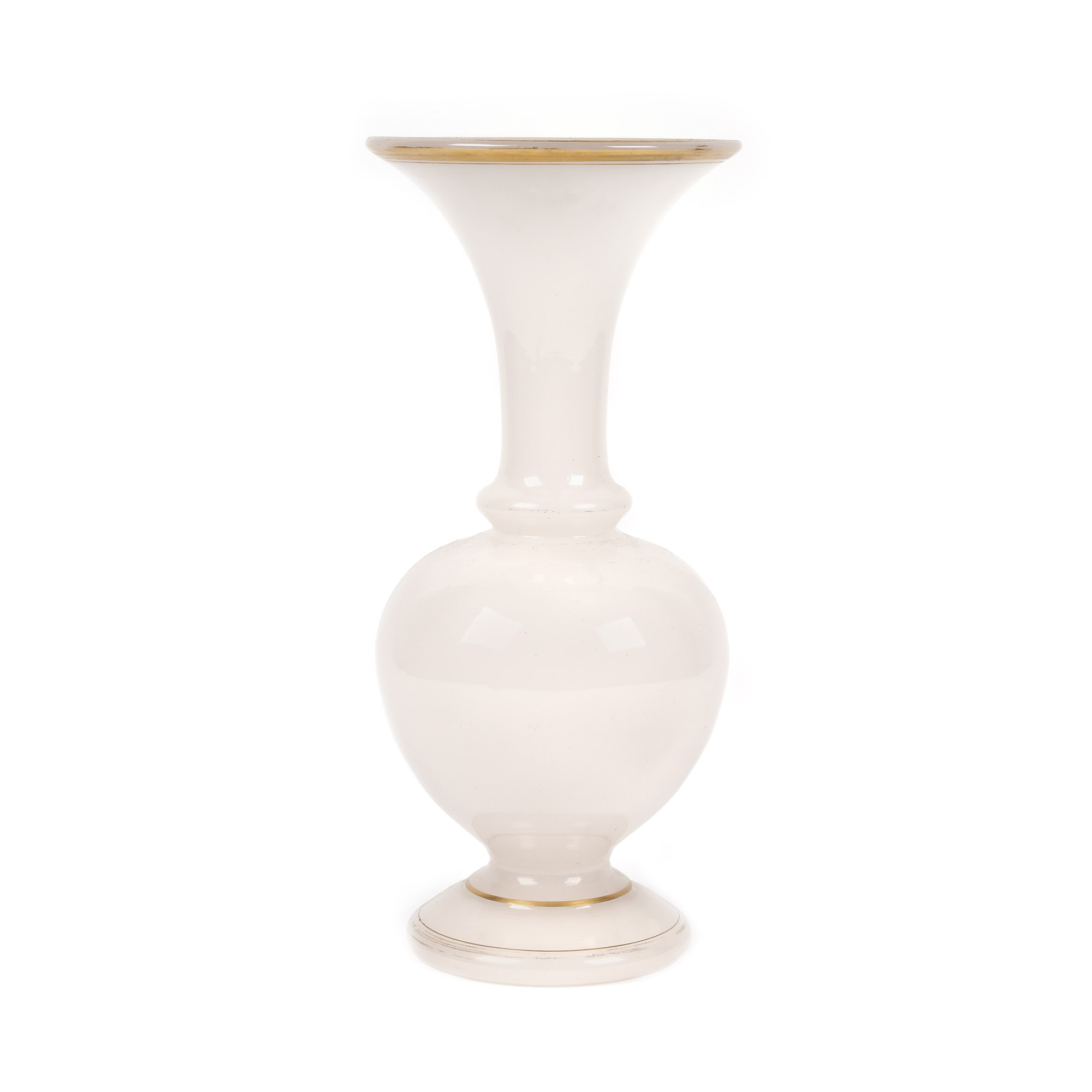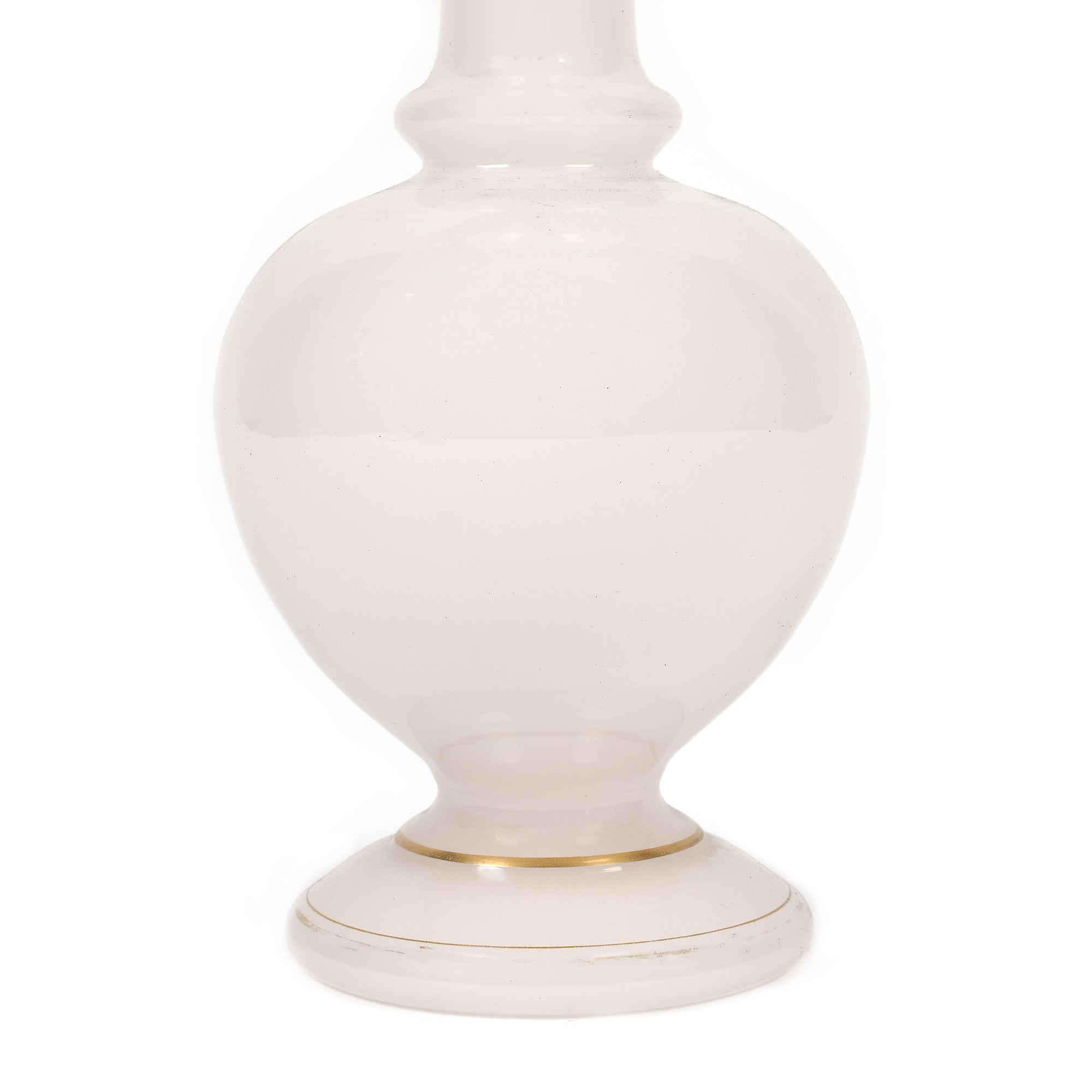 72. Vas din sticlă opalină, decorat cu frize aurii, sec. XIX, provine din colecţia Lucrezia și Ion Pacea