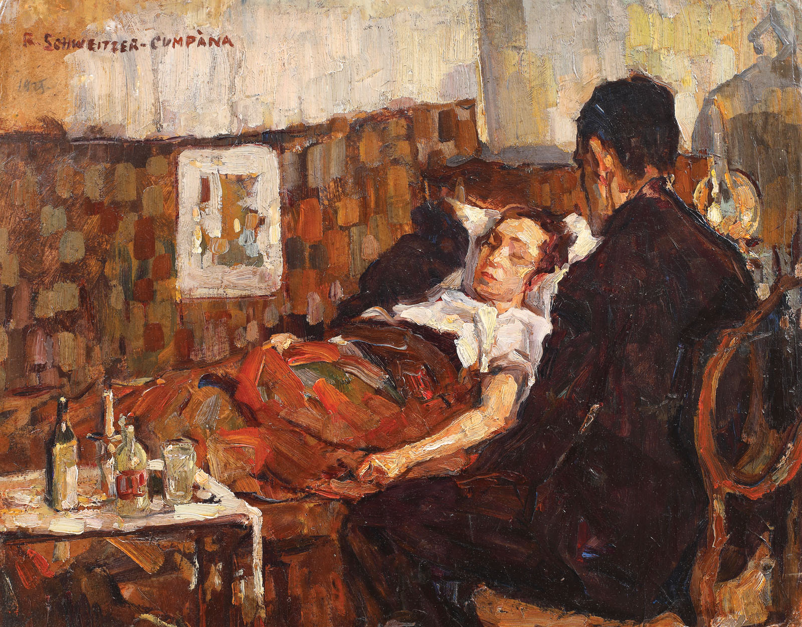 semnat stânga sus, cu roșu, "R. Schweitzer-Cumpăna"; datat stânga sus, în creion, "1925"