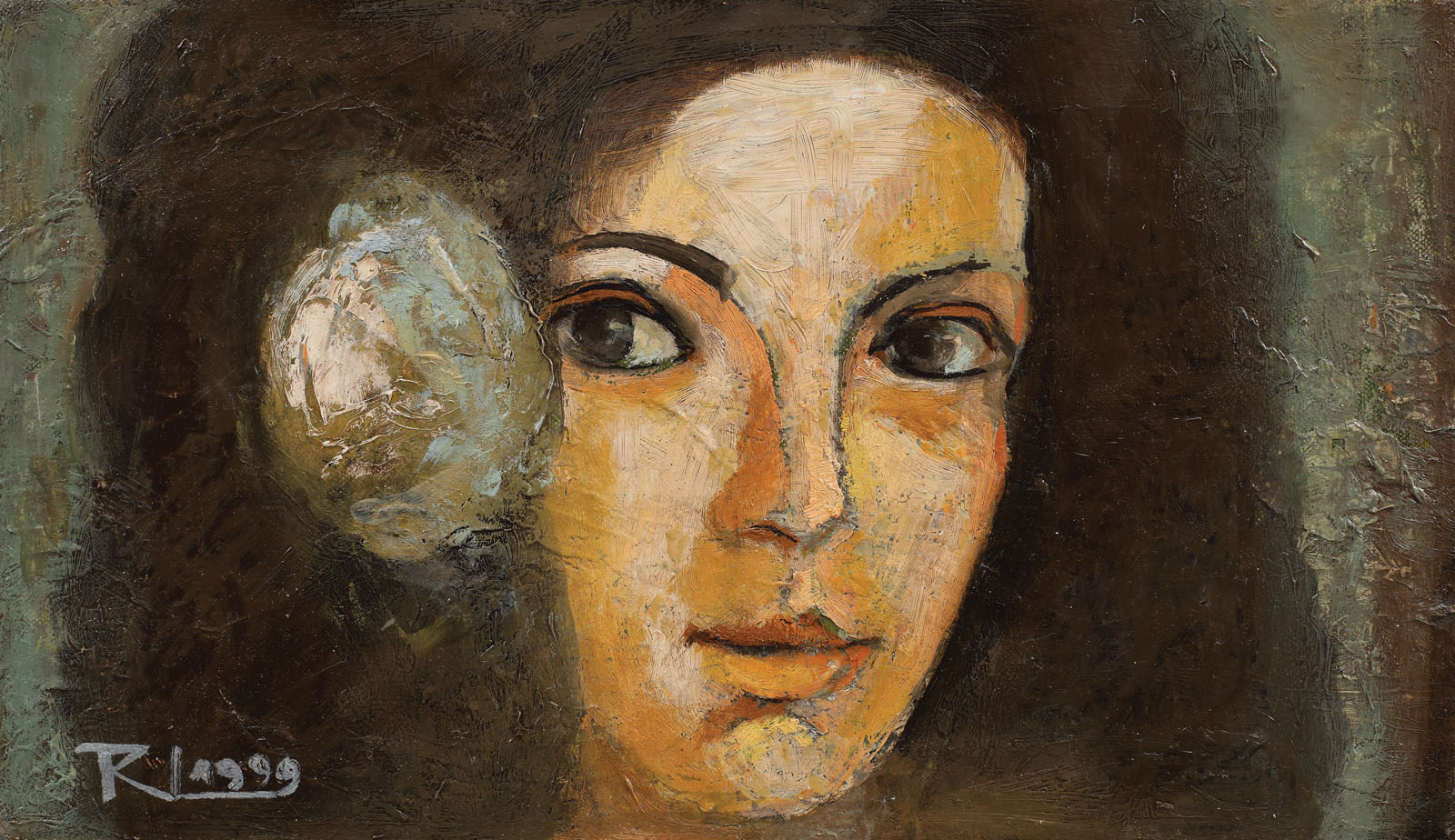 semnat și datat stânga jos, cu alb, "RL, 1999"; semnat și datat pe verso, cu negru, "RL, 24 decembrie 1999"