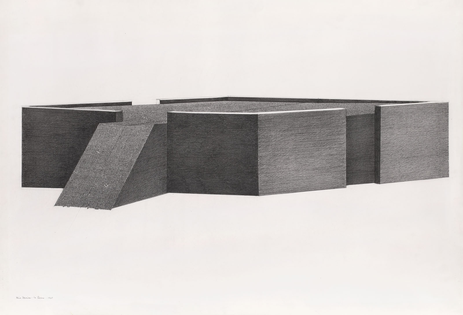 semnat, datat și intitulat stânga jos, în creion, "Horia Damian, La Piscine, 1975"