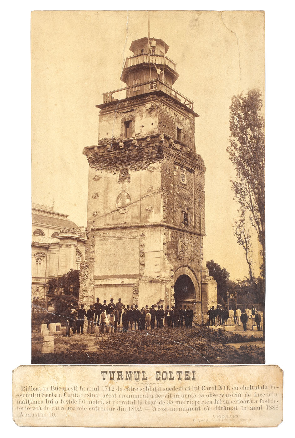 64. Fotografie inedită a Turnului Colței din București, semnată de fotograful Ioan Niculescu, cca. 1880
