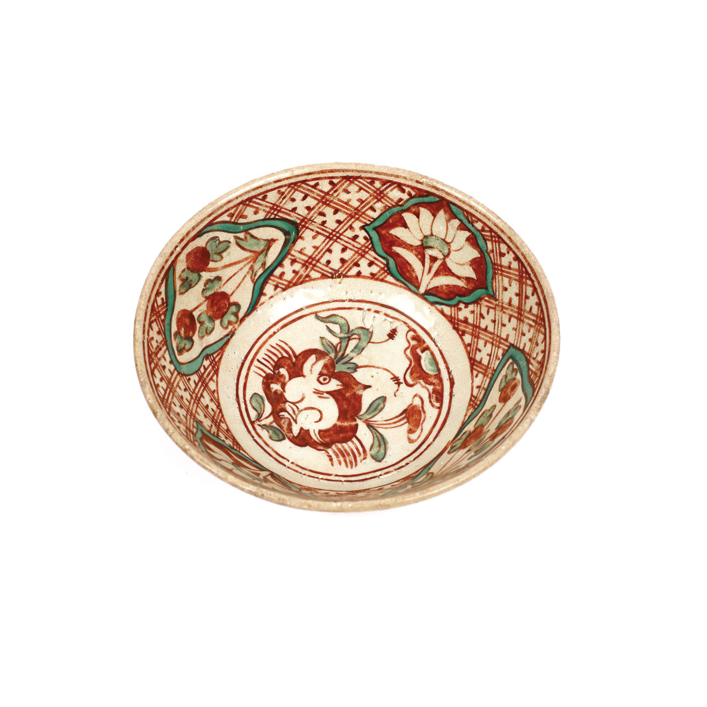 164. Bol din ceramică, decorat cu nalbe, bujori și un iepure, simbol al bunăstării, dinastia Ming, China, sec. XIV-XVII