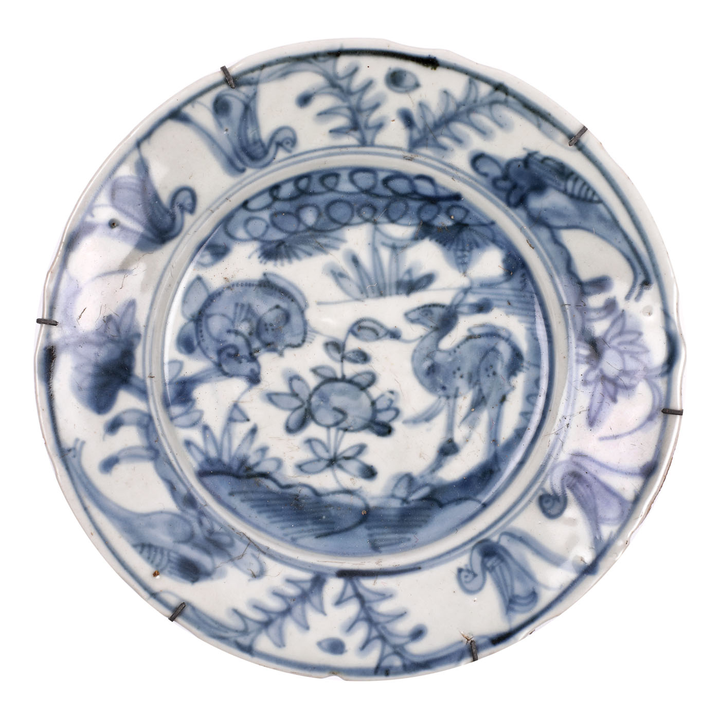 158. Platou din ceramică, decorat cu căprioare și gâscani, în stilul dinastiei Song, sfârșitul dinastiei Ming, China, sec. XVII, provine probabil dintr-un naufragiu