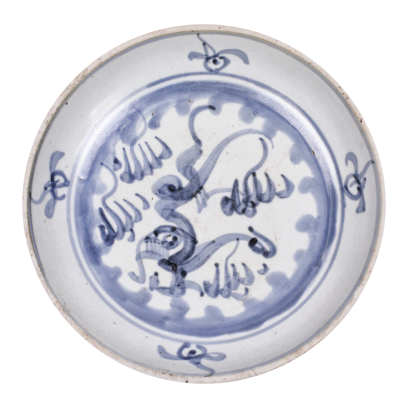 160. Platou din ceramică, decorat cu motivul dragonului printre nori, albastru deschis, perioada dinastiei Song, China, sec. XIII