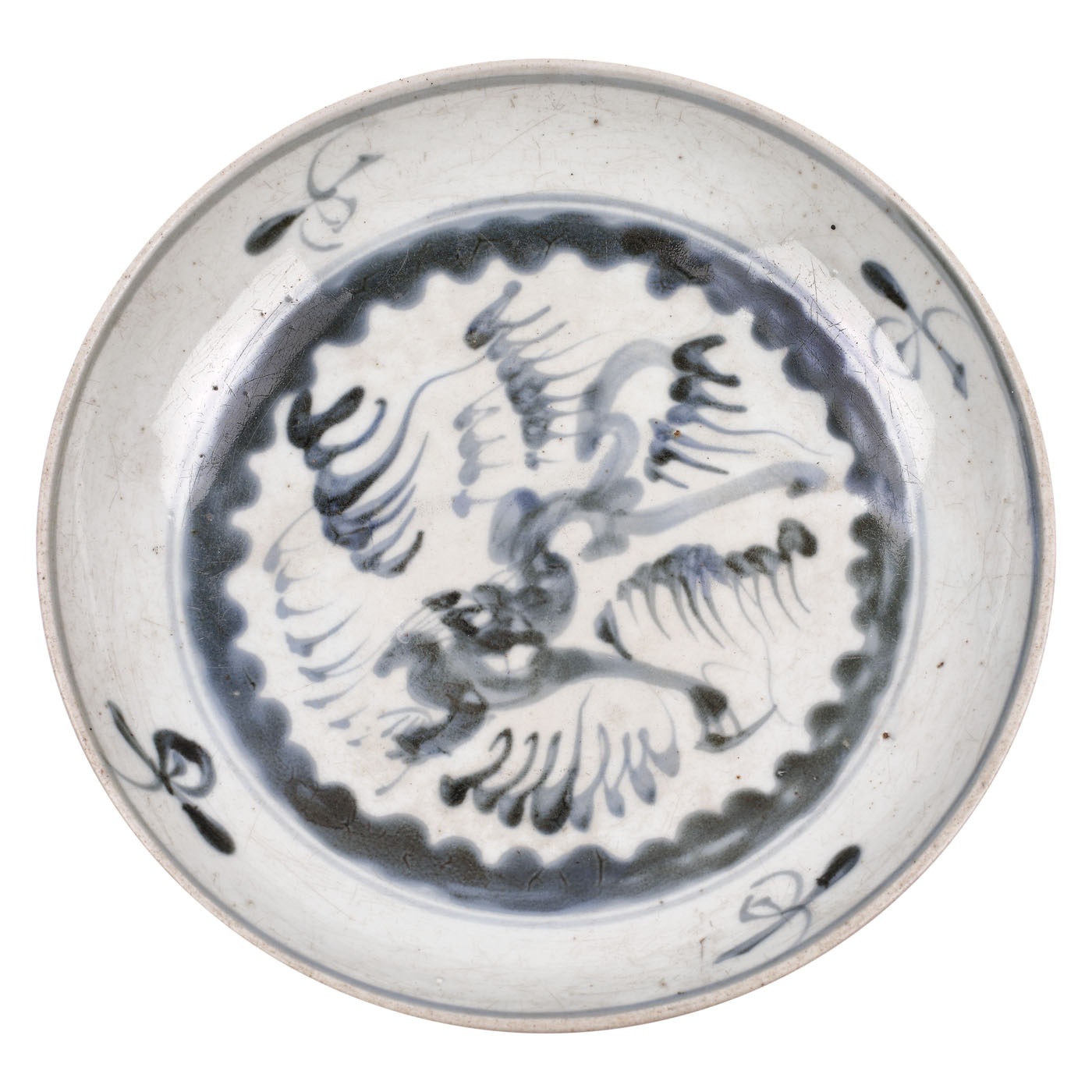 159. Platou din ceramică, decorat cu motivul dragonului printre nori, albastru oxidat, perioada dinastiei Song, China, sec. XIII