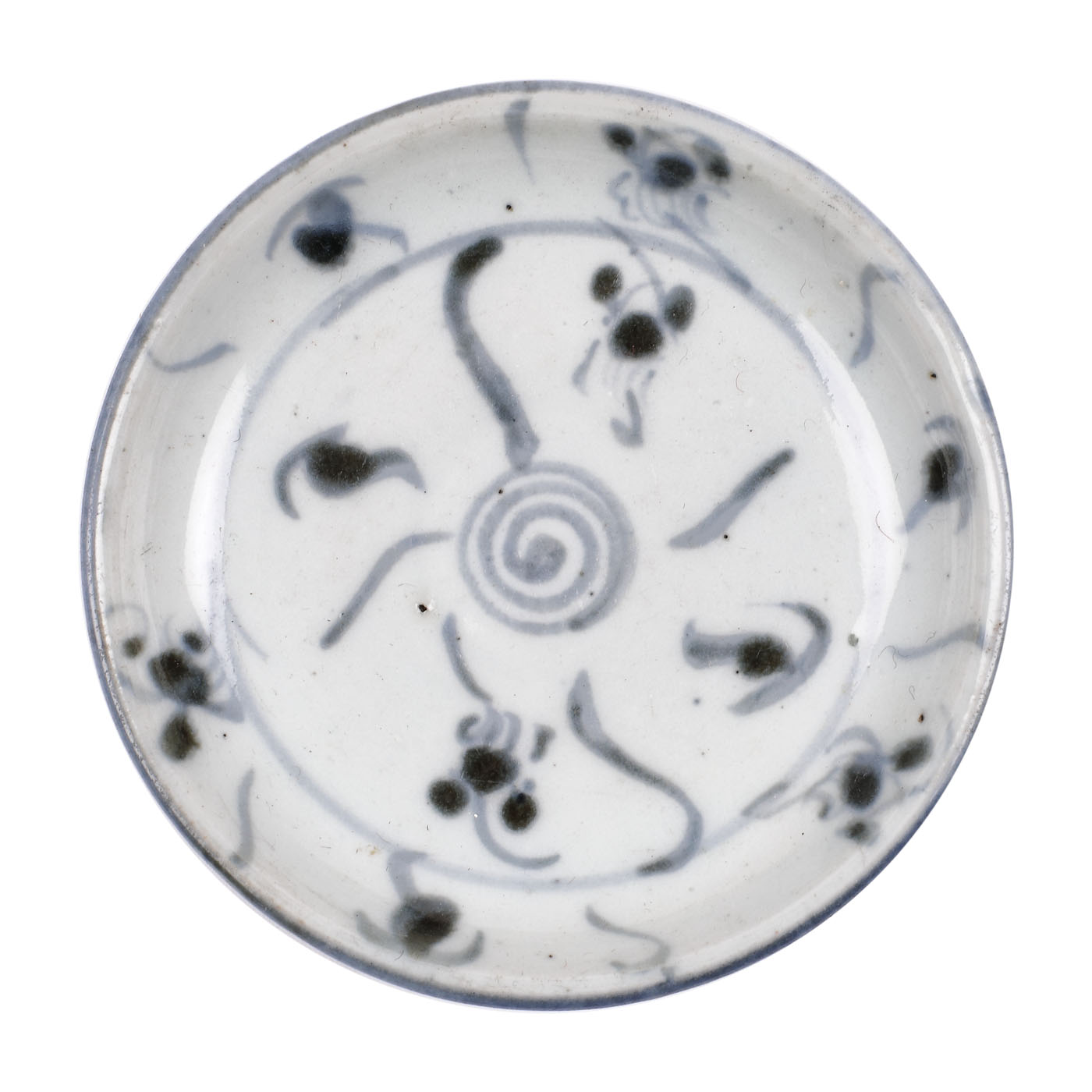 163. Platou miniatural din porţelan, ilustrând motive floral-vegetale, marcat ”ren chen”, sfârșitul perioadei Qing, China, cca. 1892