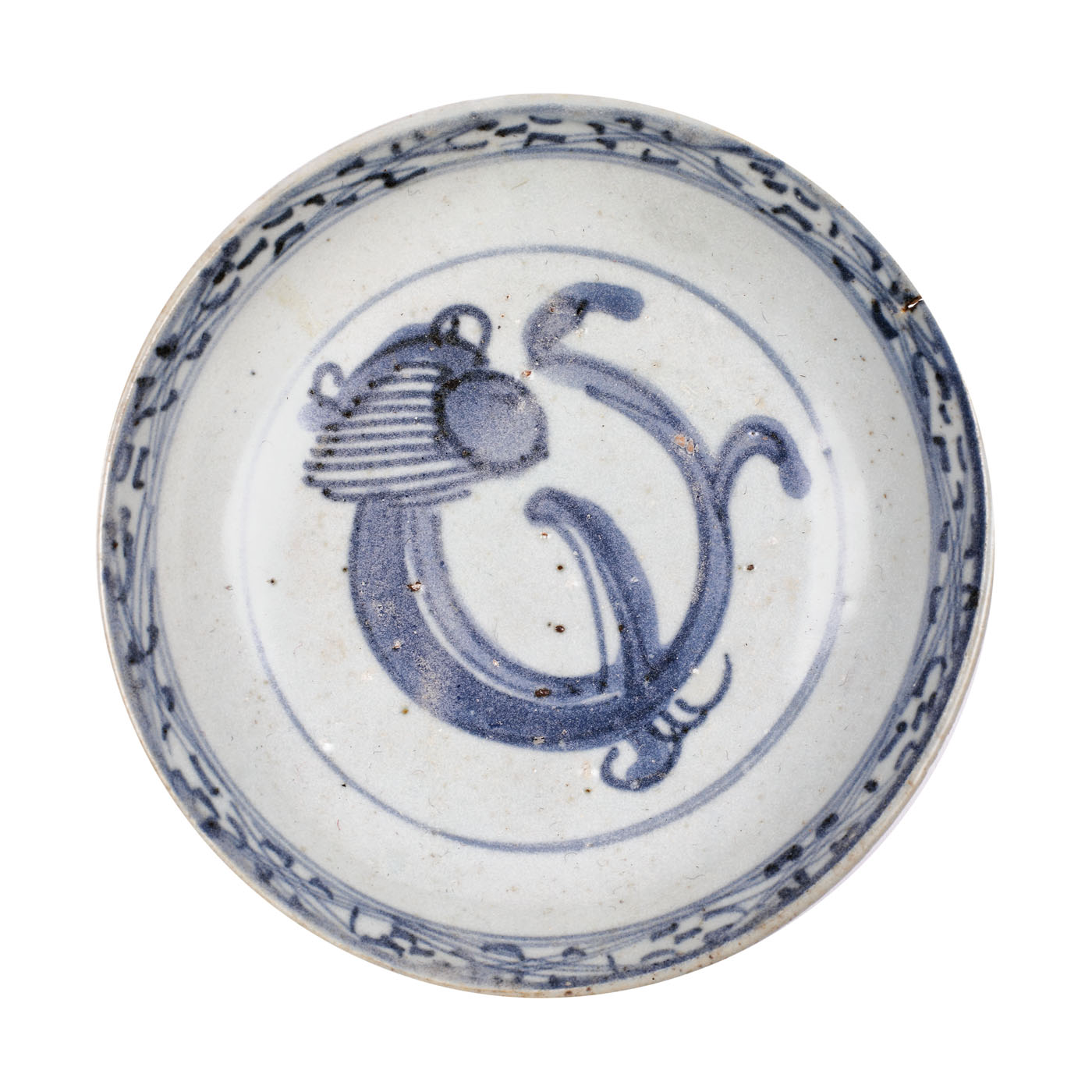 162. Platou miniatural din porţelan, ilustrând o maimuță, sfârșitul dinastiei Song, China, sec. XIII