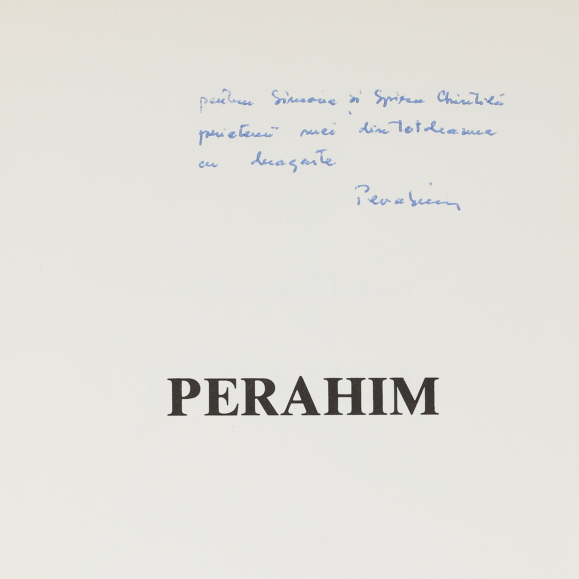 105. Album ”Perahim”, de Edouard Jaguer, Paris, 1978, cu dedicația lui Jules Perahim către familia Chintilă, provine din colecția familiei Spiru și Simona Chintilă
