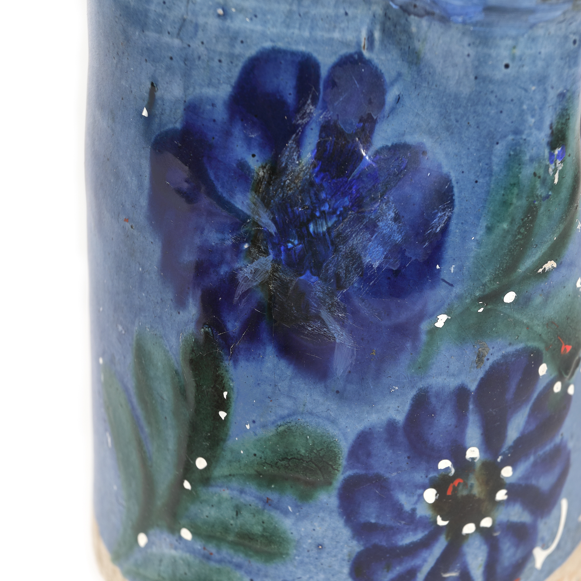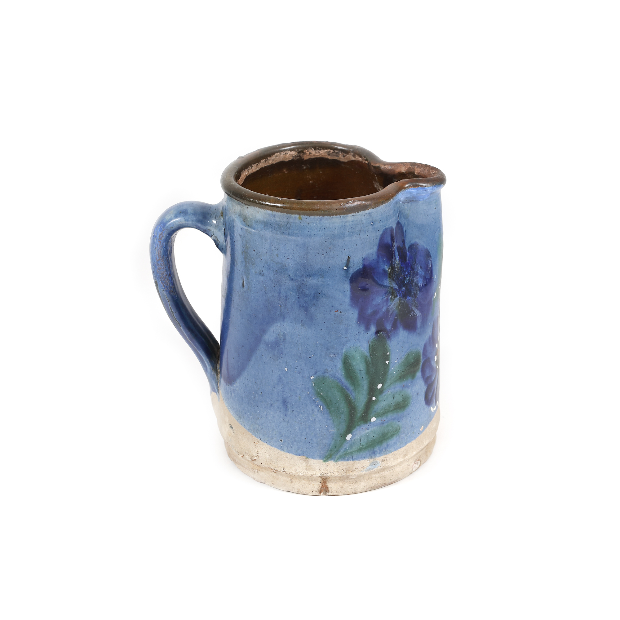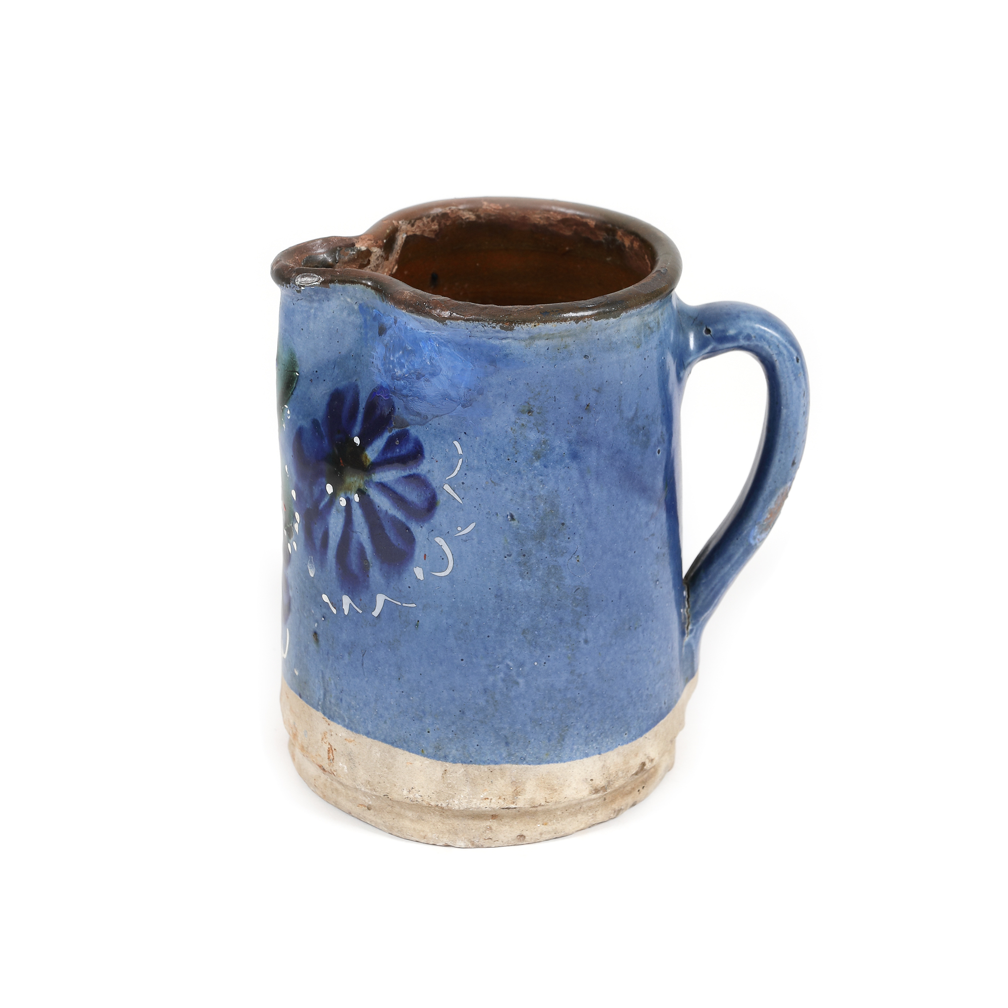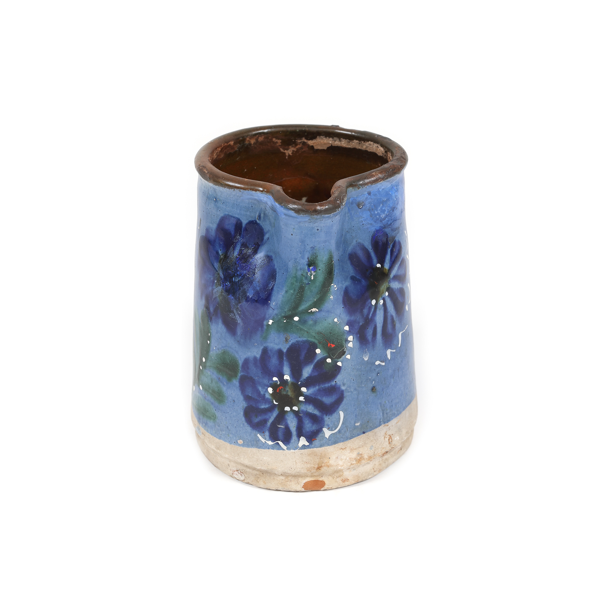 130. Cană pentru lapte, decorată cu albăstrele, Transilvania, prima jumătate a sec. XX, provine din colecția familiei Spiru și Simona Chintilă