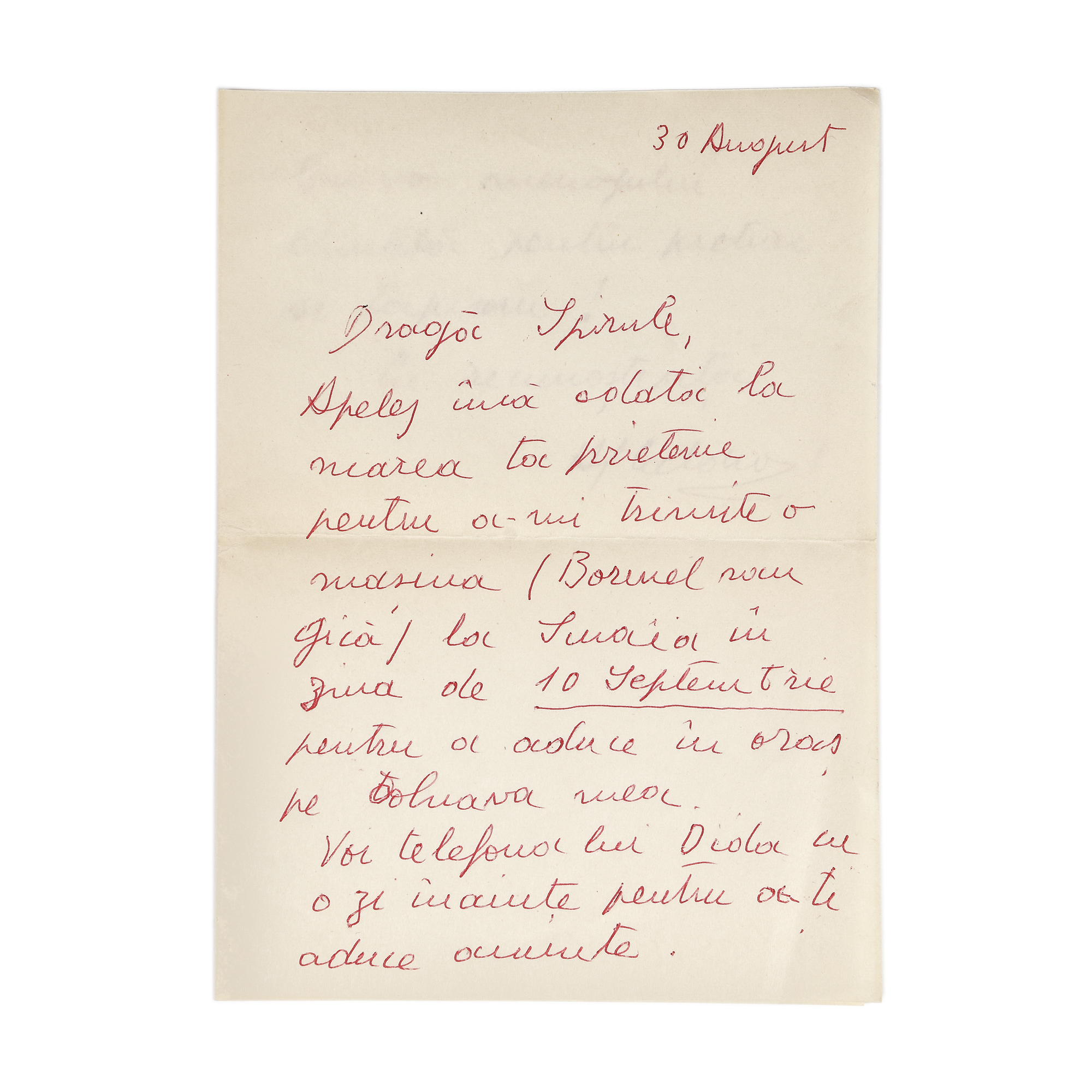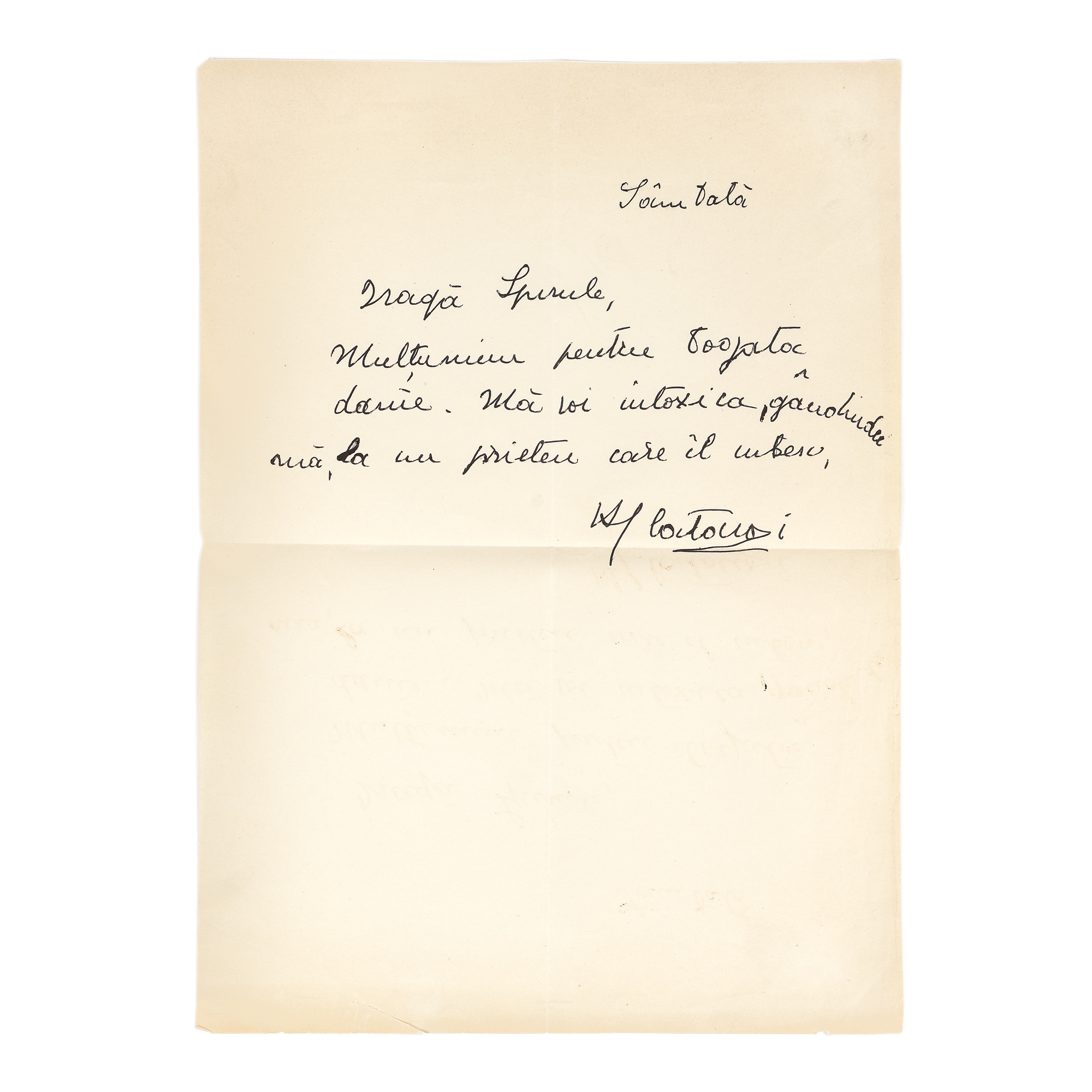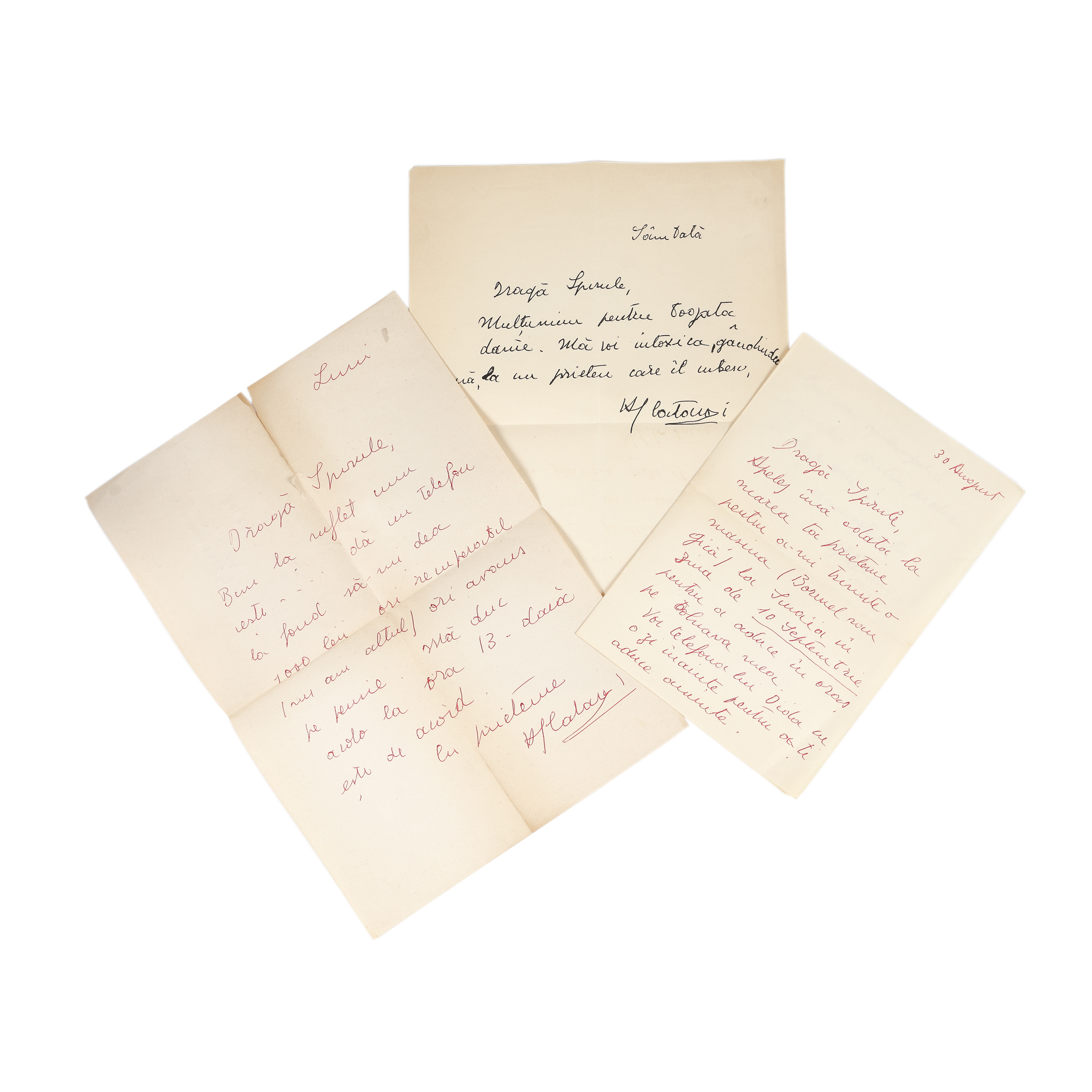 100. Lot format din 3 scrisori, ”Dragă Spirule” trimise de Henri Catargi către Spiru Chintilă (3 file), provine din colecția familiei Spiru și Simona Chintilă