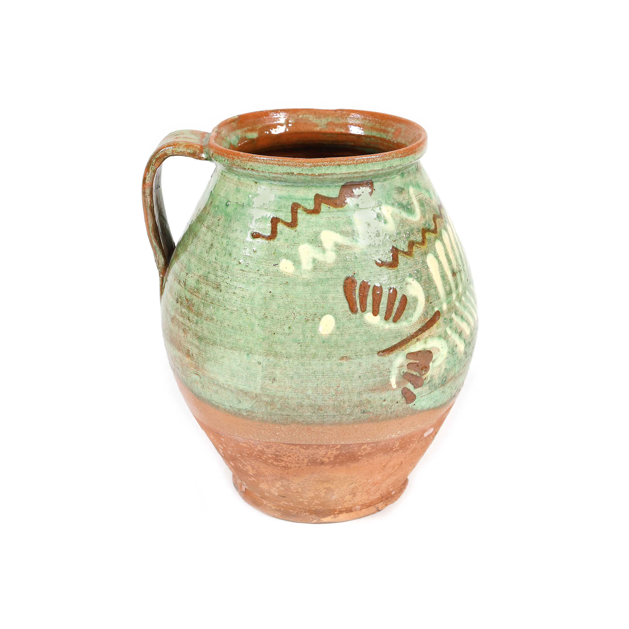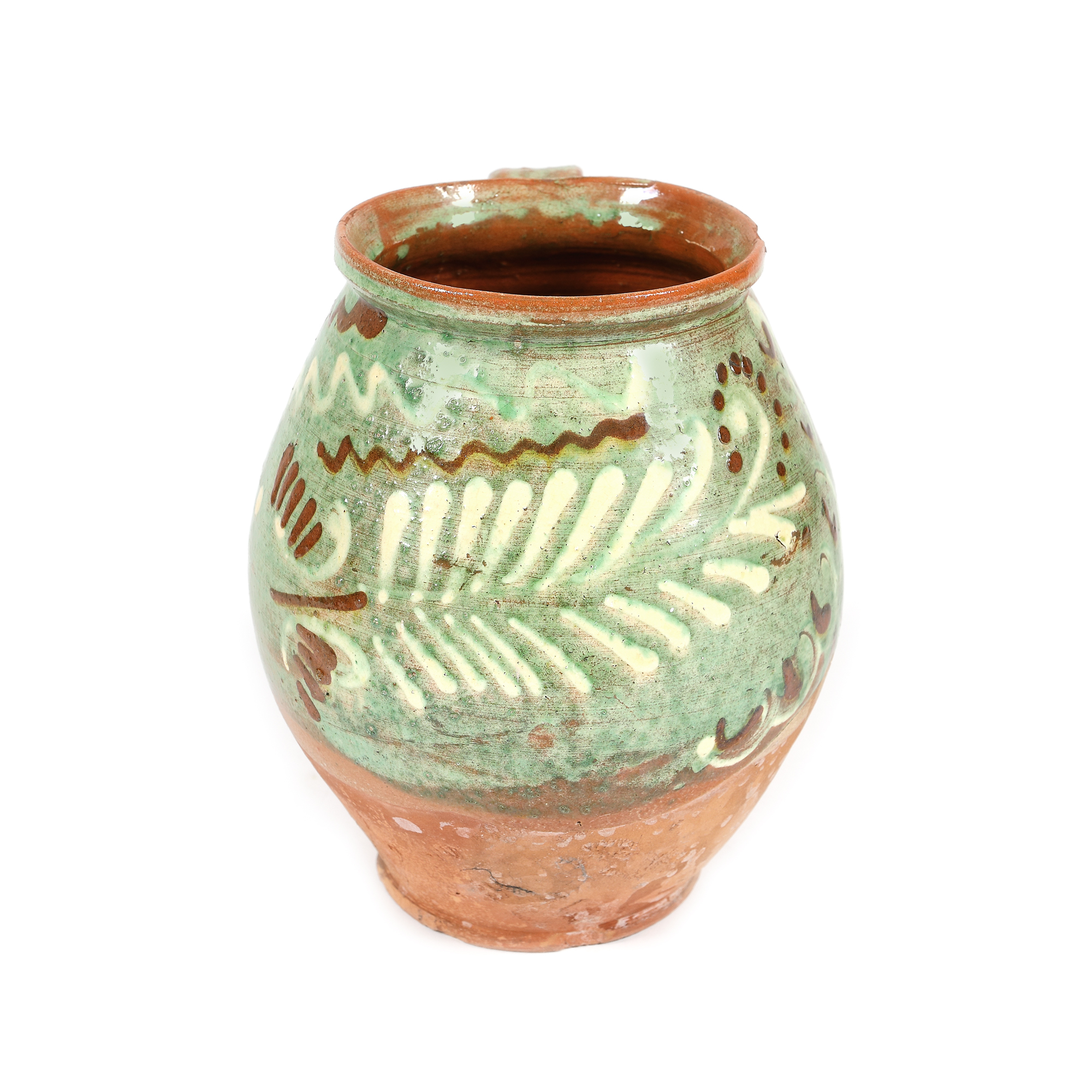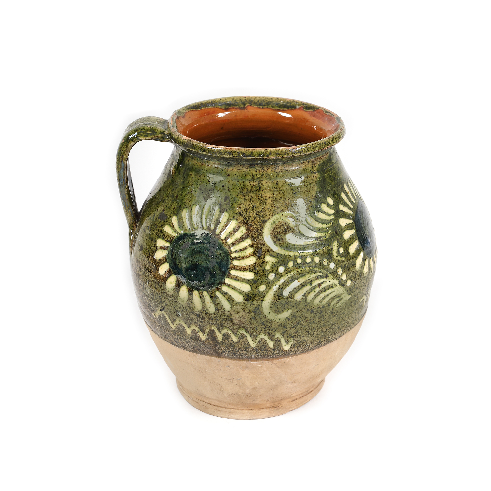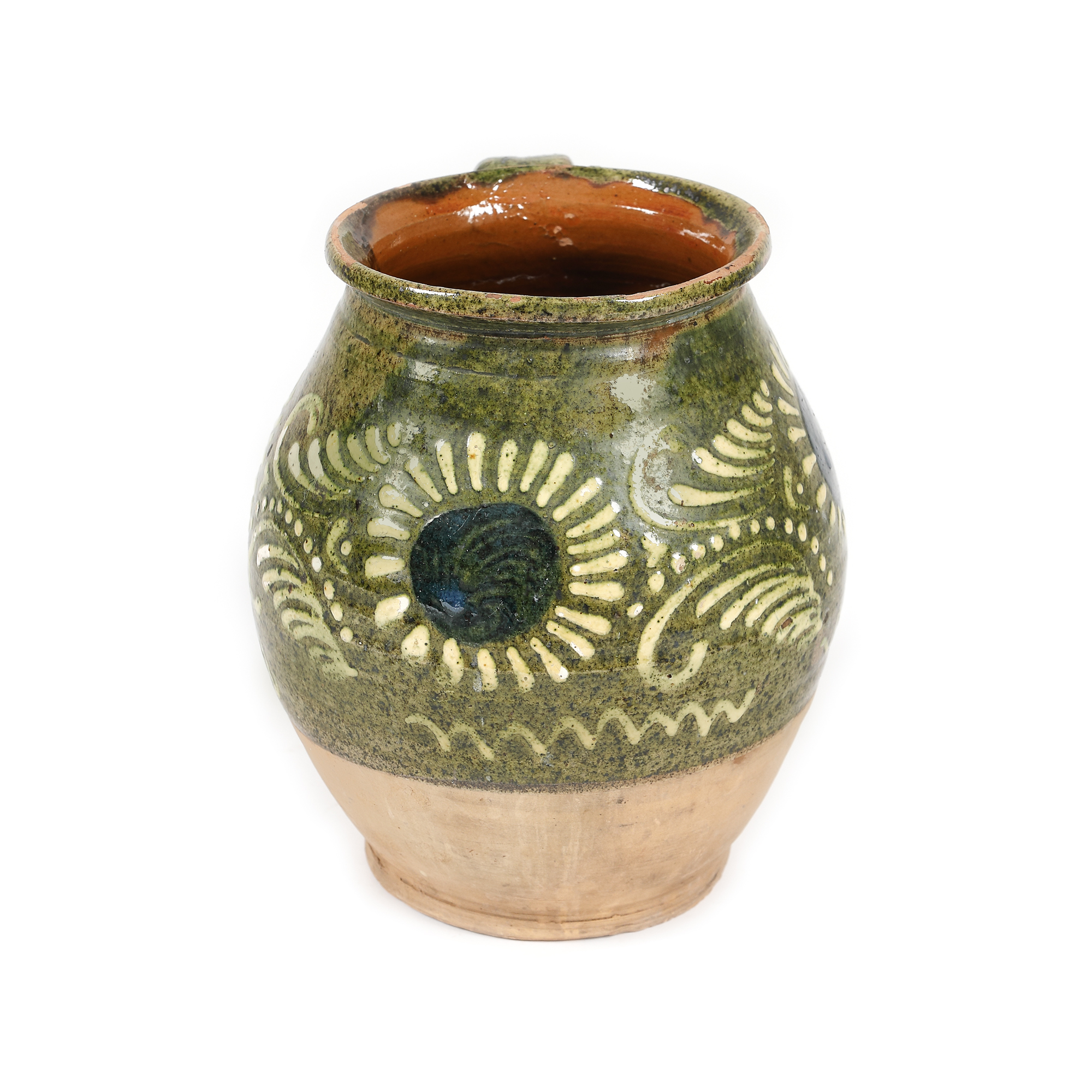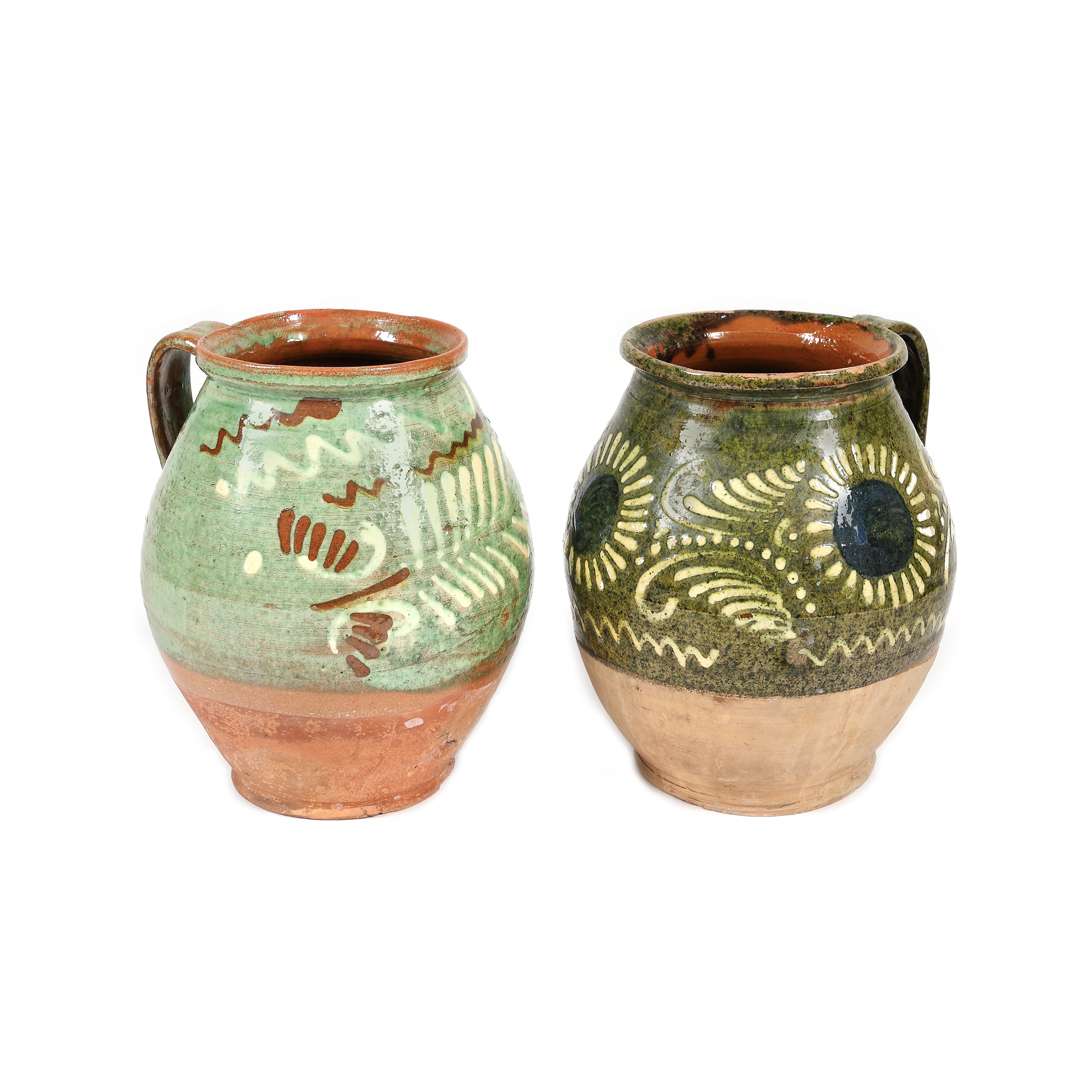 131. Lot format din două vase de lapte, decorate cu motive floral-vegetale, centrul Horezu, mijlocul sec. XX, provine din colecția familiei Spiru și Simona Chintilă