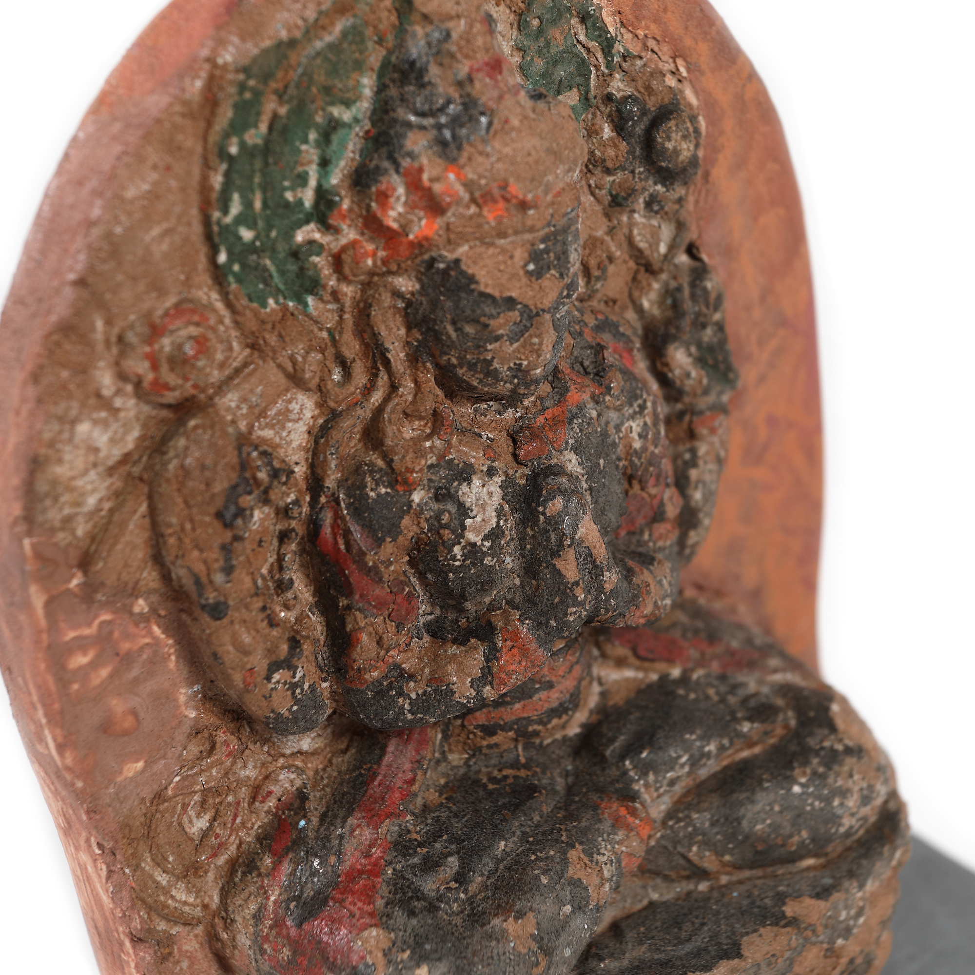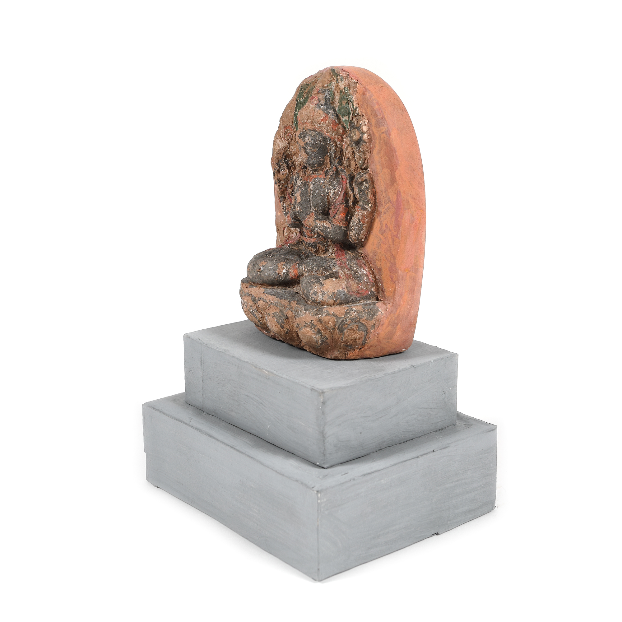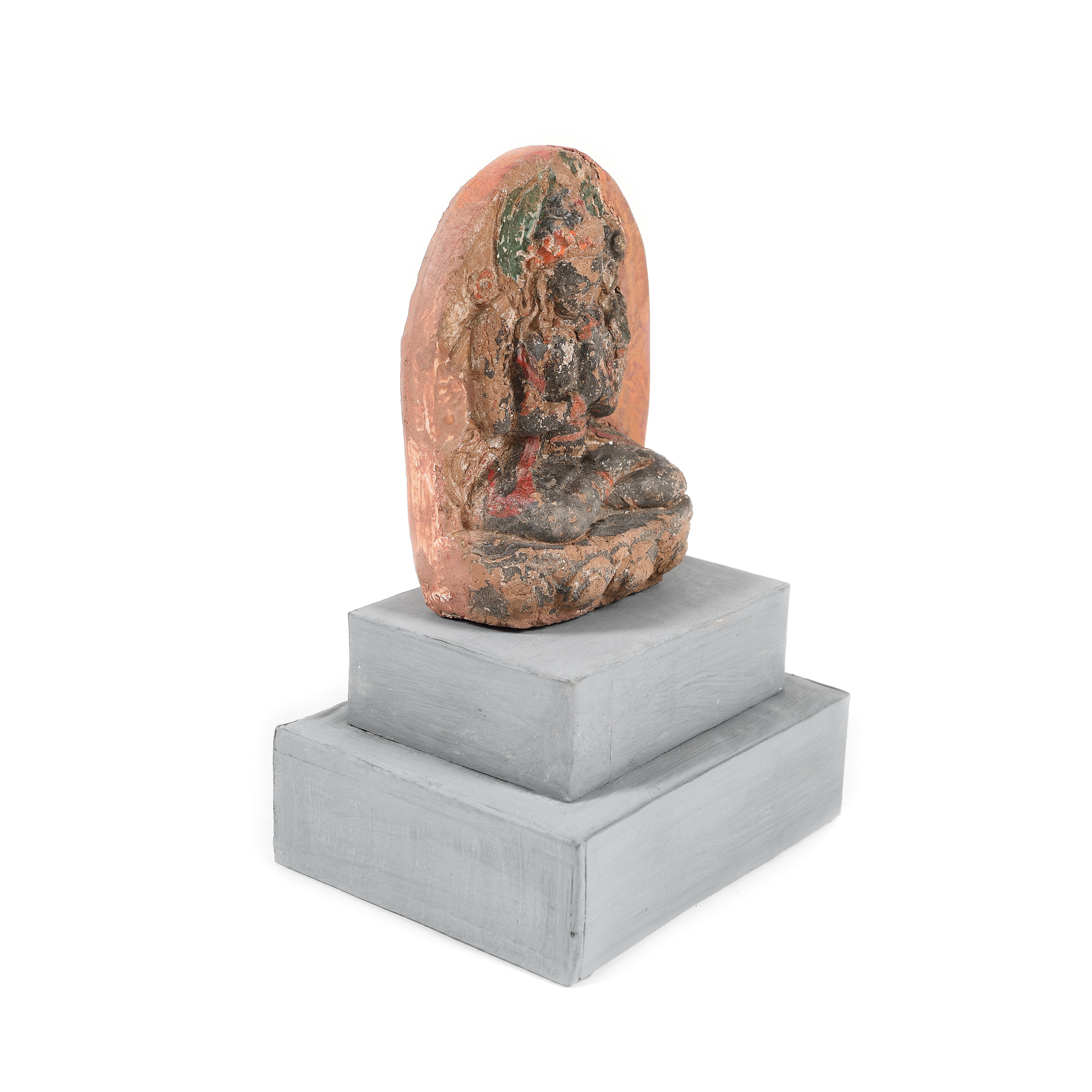 81. Lotus din teracotă, reprezentând un Buddha, pictat, perioada Qing, China, sec. XIX, provine din colecția familiei Spiru și Simona Chintilă