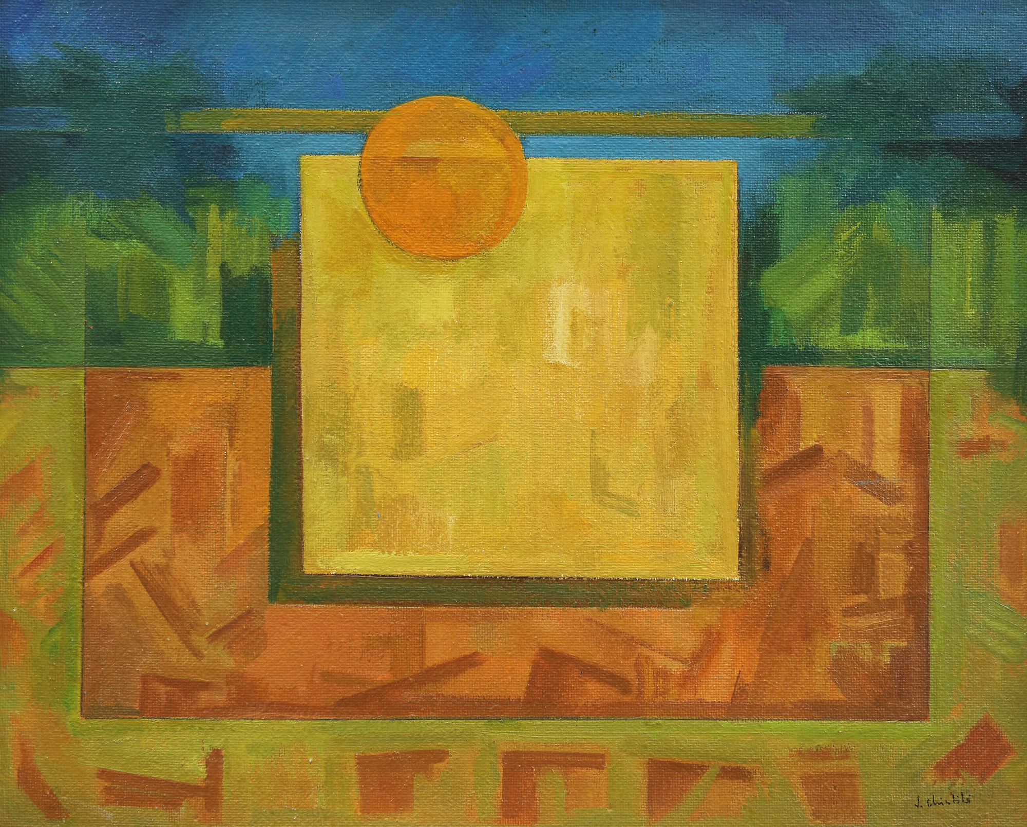 Opera a participat la expoziția retrospectivă „Un sfert de veac fără S. Chintilă”, 2009, de la Galeria ArtSociety, București și este reprodusă în catalogul expoziției la p. 65, sub titlul „Peisaj geometric”.