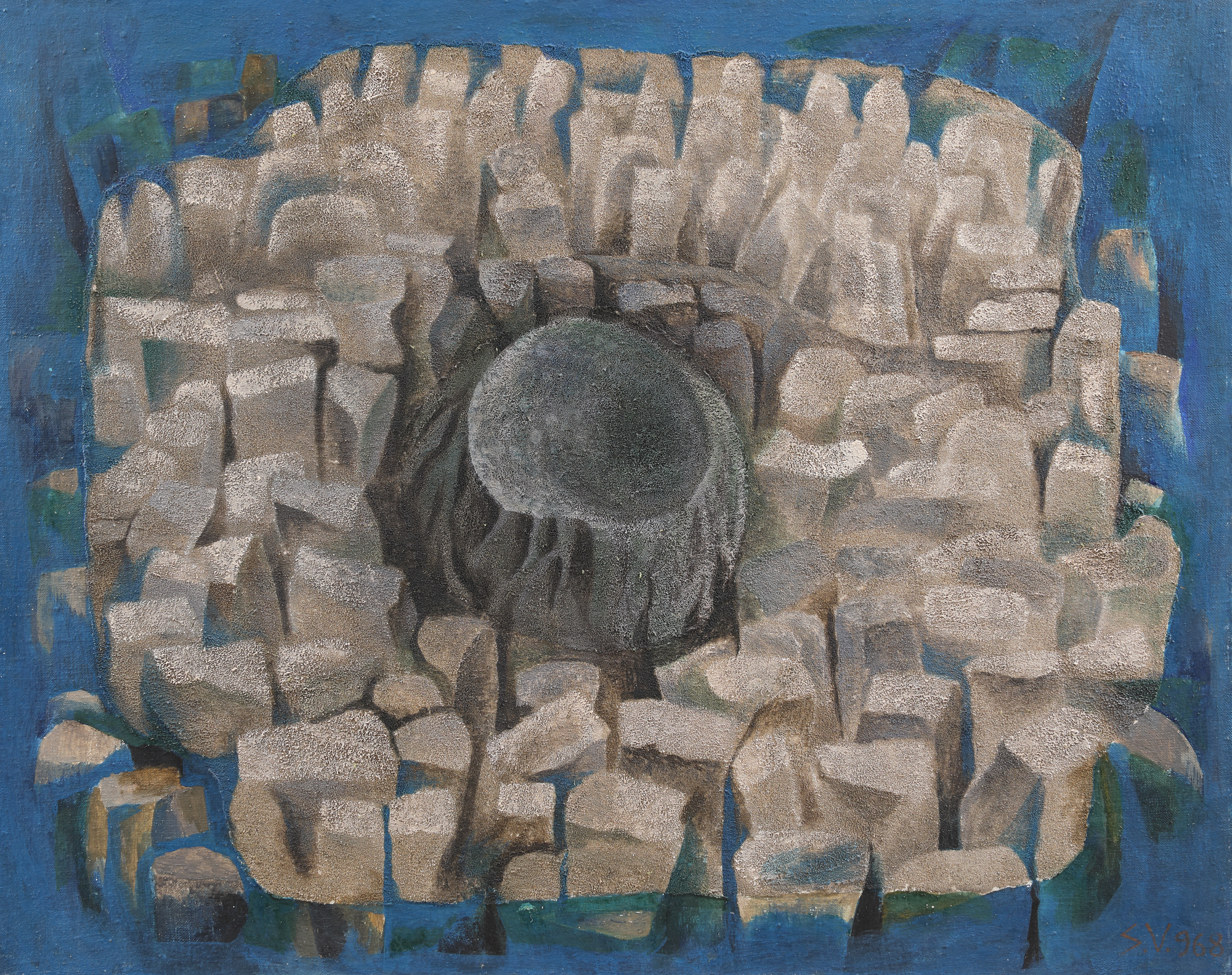 semnat și datat dreapta jos, cu brun, "S.V, (1)968"
