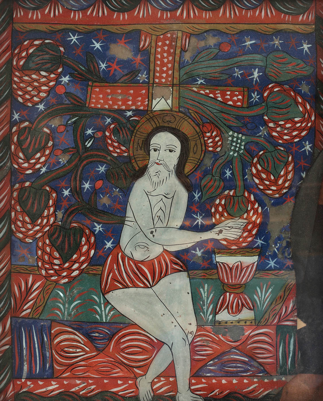 Figura lui Iisus domină planul central într-o iconografie simplă care ni-L arată după învierea Sa. Bogăţia decorului, atât din punct de vedere iconografic, precum şi cromatic, demonstrează adaptarea de către meşterul iconar a artei populare la exigenţele unei tratări cu funcţie religioasă.
