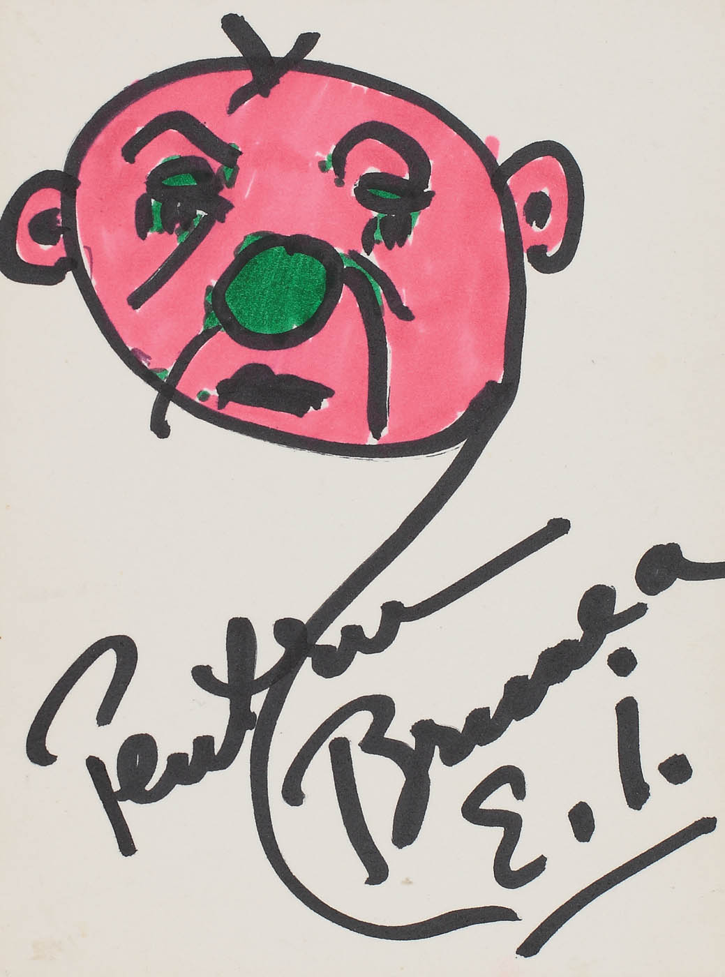 semnat și dedicat central, cu negru, "Pentru Brunea, E.I."