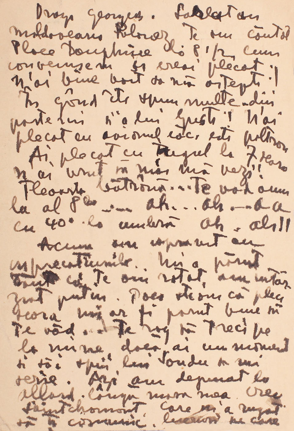 131. Carte poștală trimisă de Jean Alexandru Steriadi către Gheorghe Răut, în anul 1932, însoțită de un desen șarjă