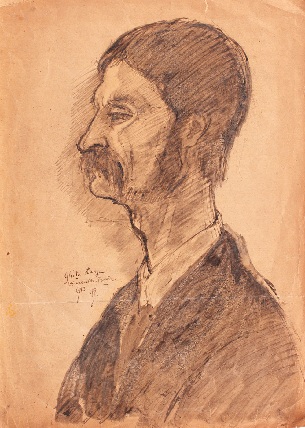 intitulat, datat şi semnat stânga jos, în peniţă, "Ghiţă Lungu, Braconier Romîn, 1913, TP"