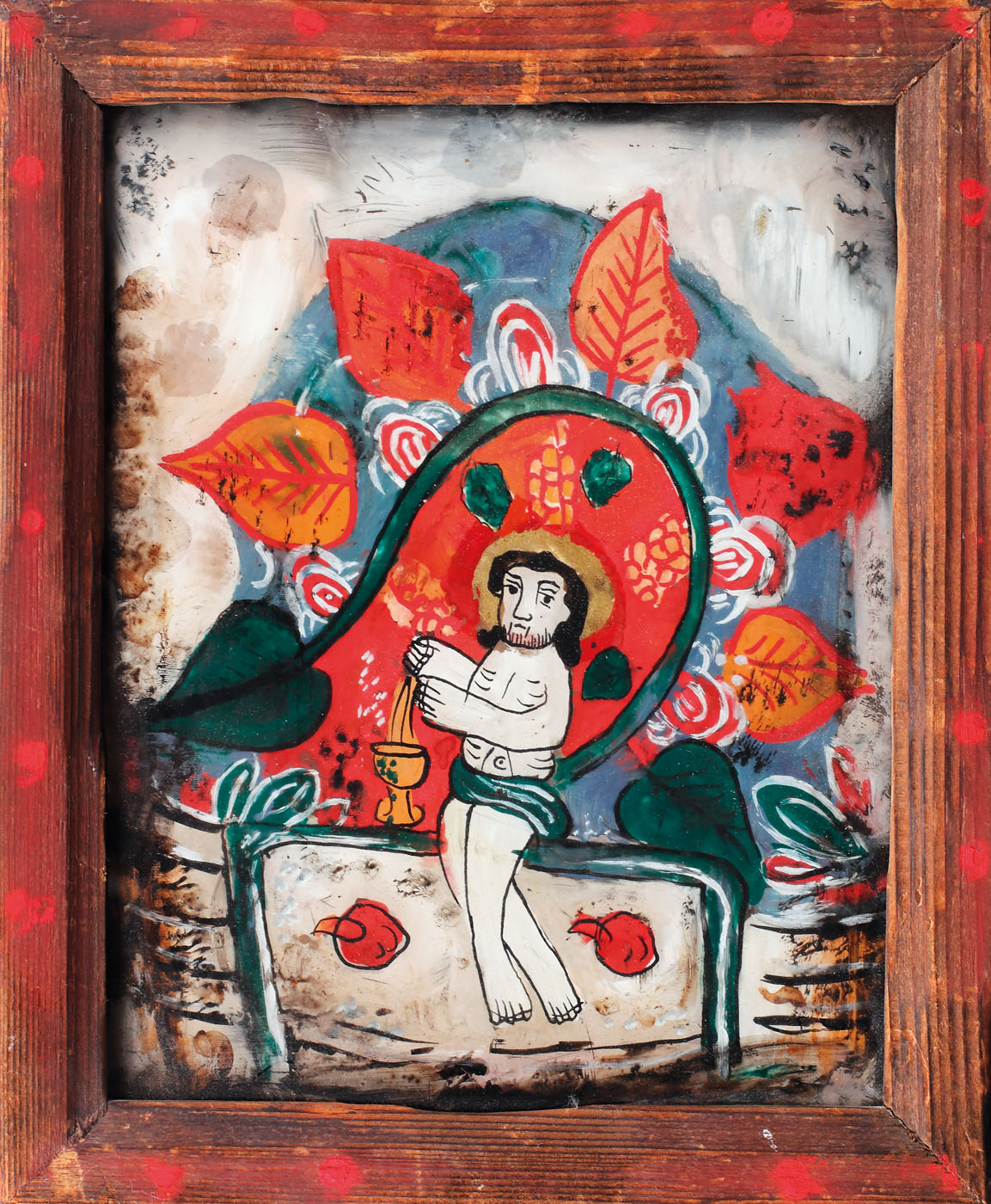 145. Icoană pe sticlă, "Iisus Hristos - viță euharistică", atelier transilvănean, începutul sec. XX