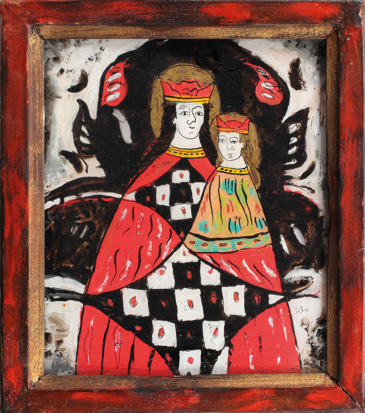 148. Icoană pe sticlă, "Maica Domnului şi Pruncul", atelier transilvănean, prima jumătate a sec. XX