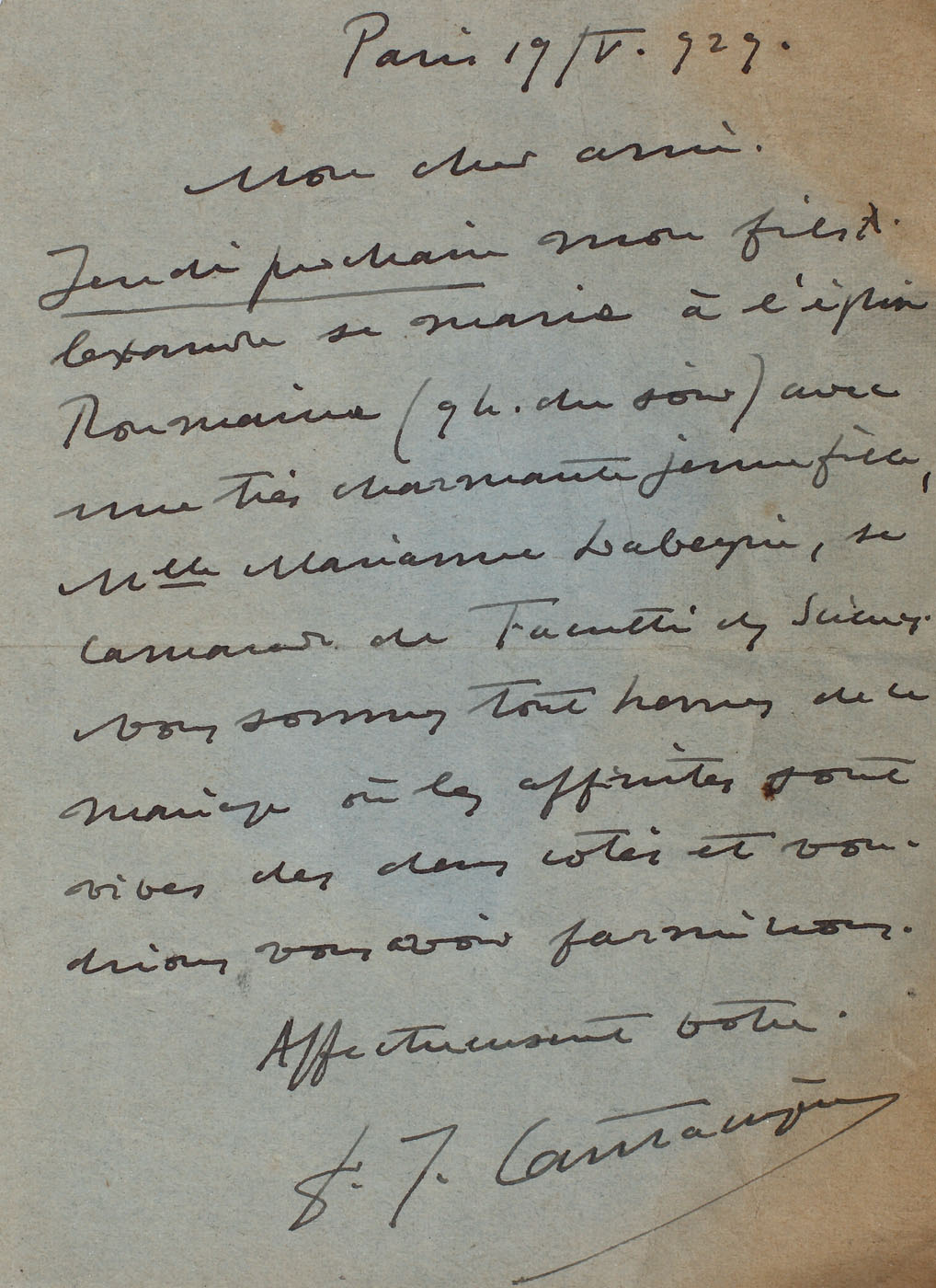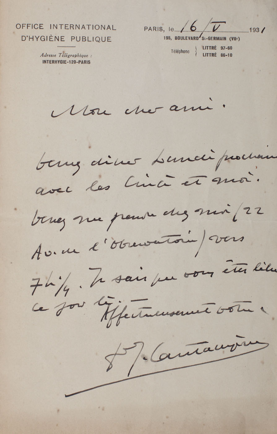 136. Lot format din 3 scrisori trimise de Șerban Cantacuzino către Pallady și Gheorghe Răut în anii 1929-1931 și o carte poștală către Gheorghe Răut din Finistère, în anul 1920