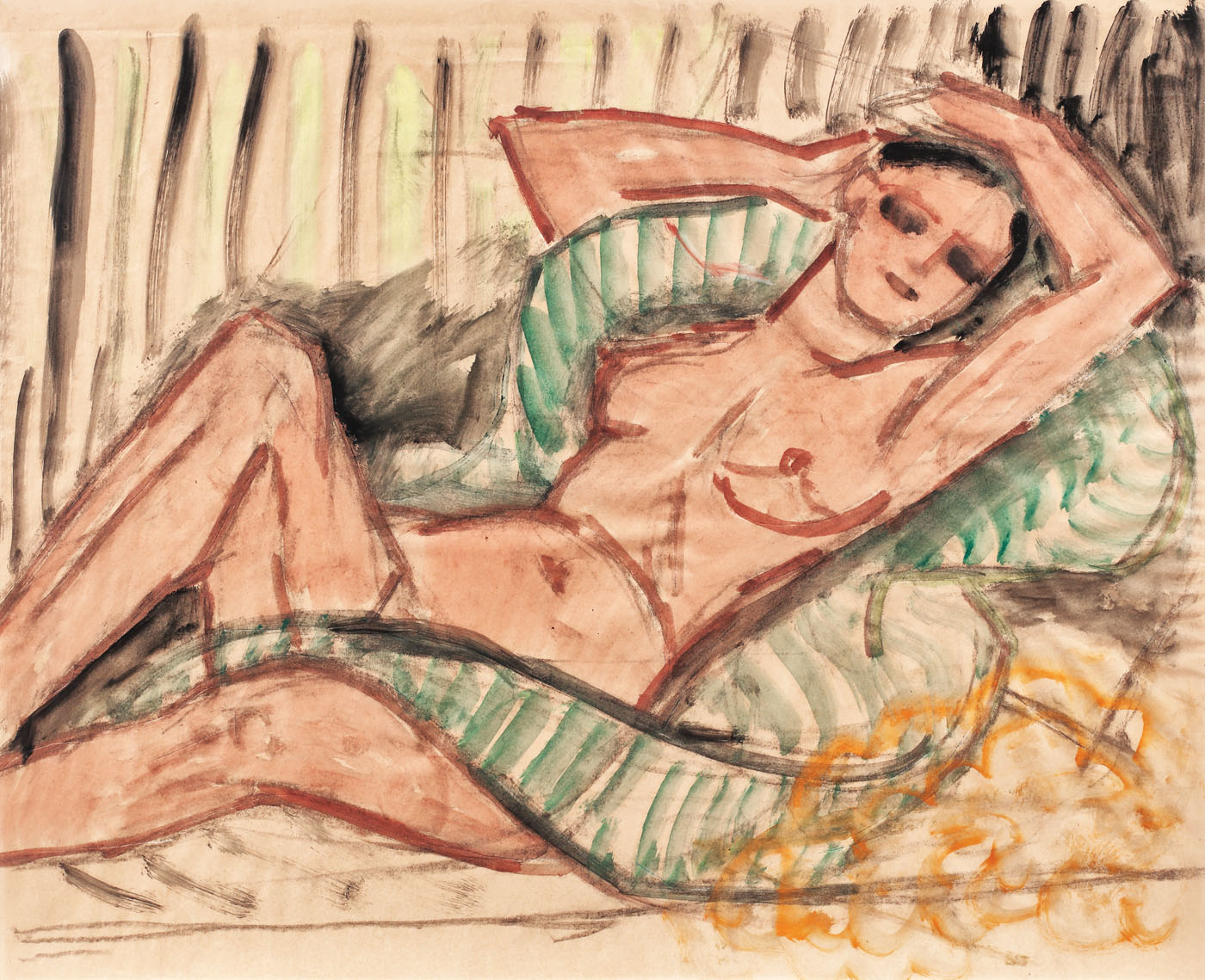 174. Nud cu eșarfă verde