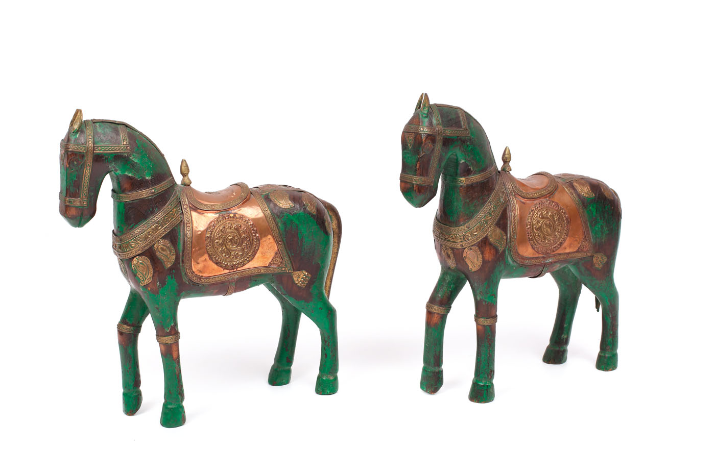 141. Pereche de căluți orientali, din lemn și alamă [Sec. XX]