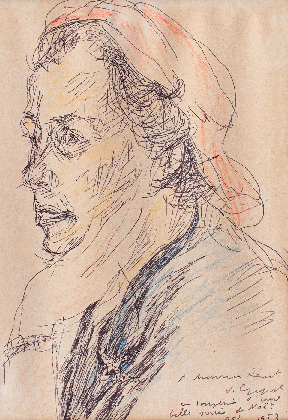 semnat, datat și dedicat dreapta jos în peniţă, "A monsieur Răut, J. Czapski, un souvenir d'une belle soirée de Noël, 25 XII 1953"