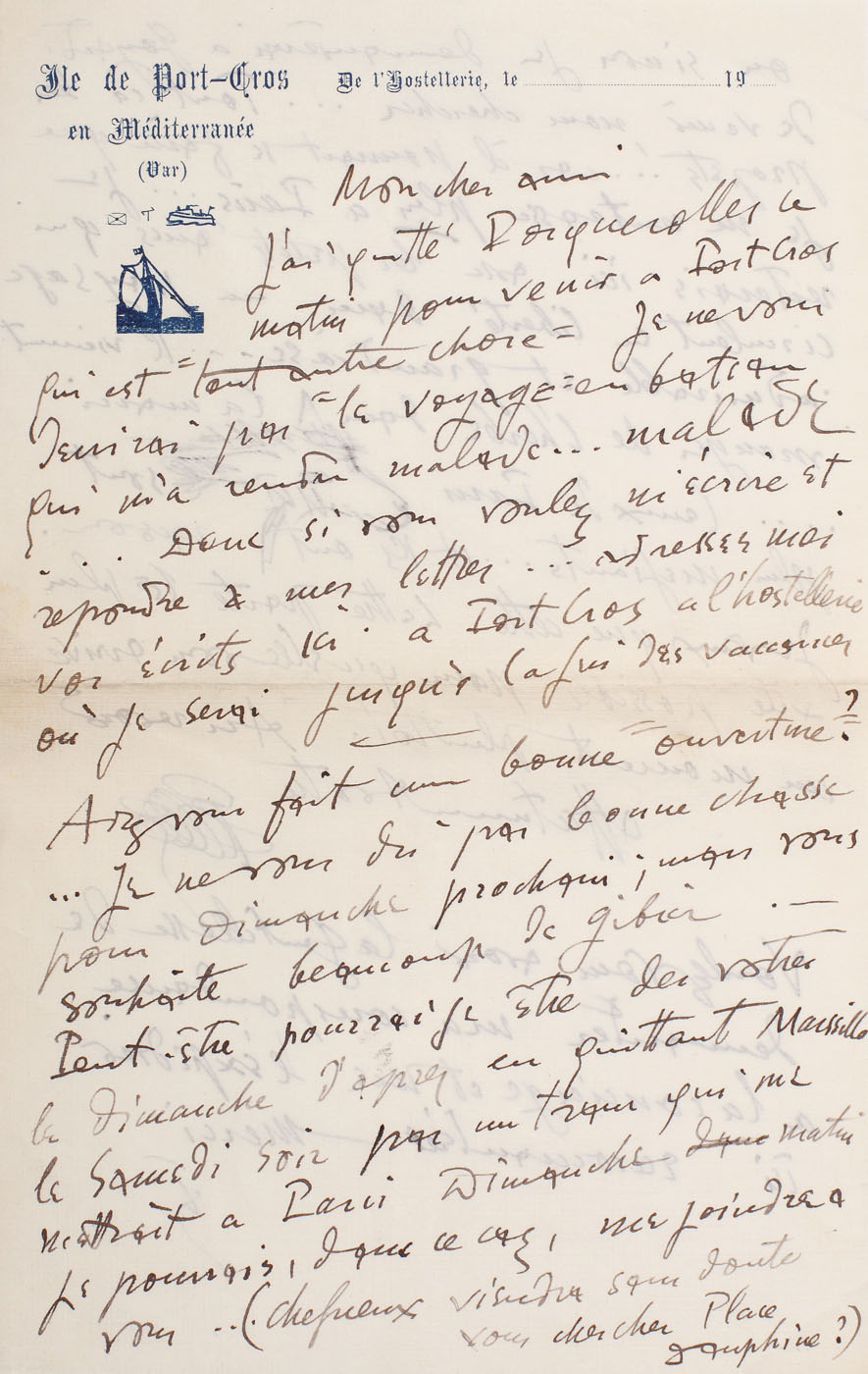133. Scrisoare trimisă de Theodor Pallady către Gheorghe Răut, din călătoria la Port-Cros, din 1930