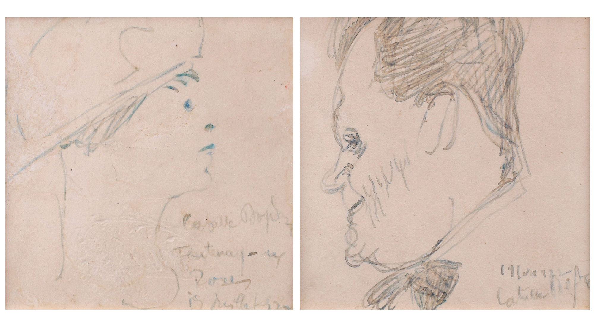 A. semnat, datat și localizat dreapta jos, în peniță, "Catulle Bogdan, Fontenay aux Roses, 19 Juillet (1)922"; B. semnat și datat dreapta jos, în peniță, "Catulle Bogdan, 19/VII (1)922"
