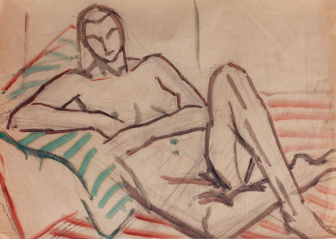 acuarelă și cărbune pe hârtie