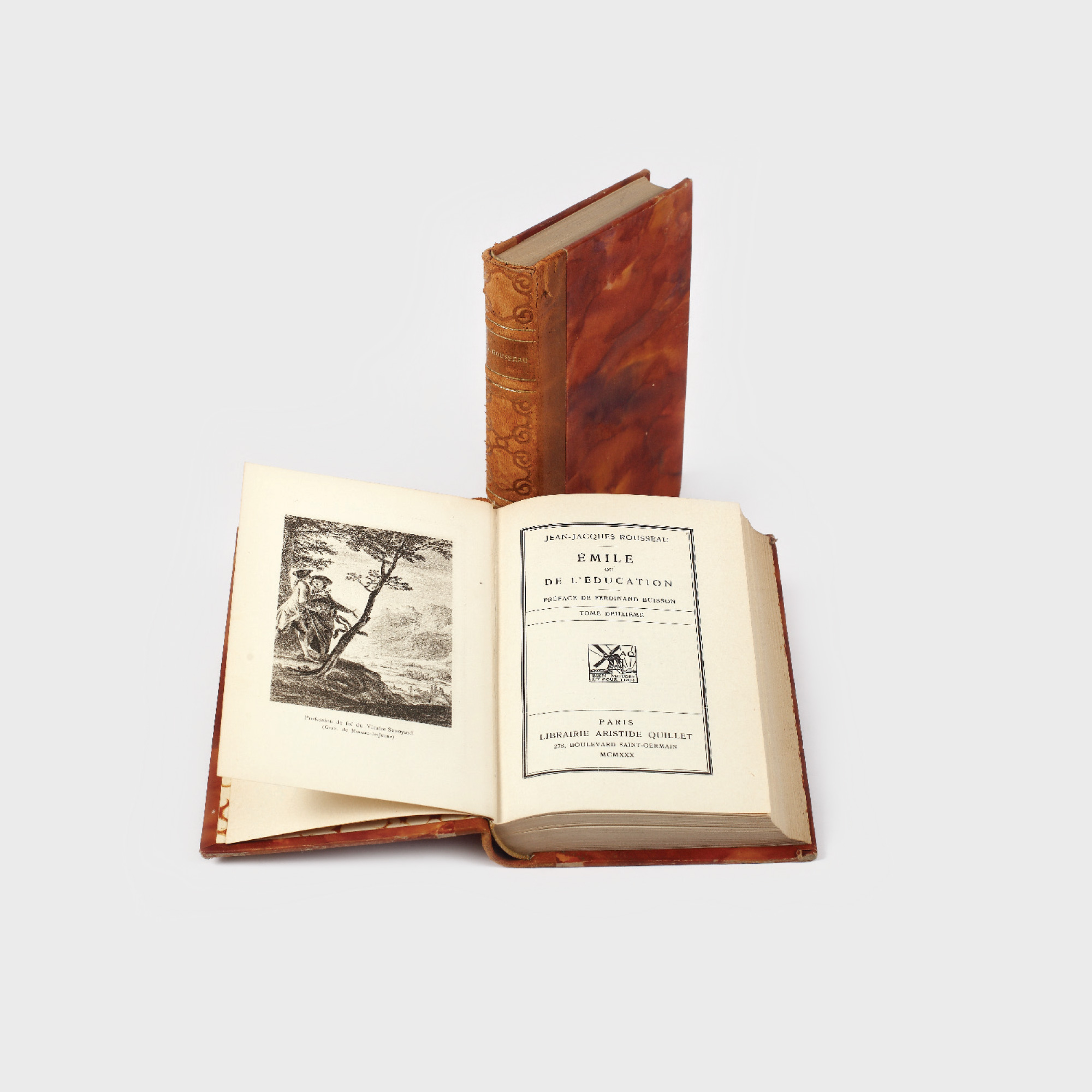 60. "Emile ou de L'education", de Jean-Jaques Rousseau, Paris, 1930, două volume