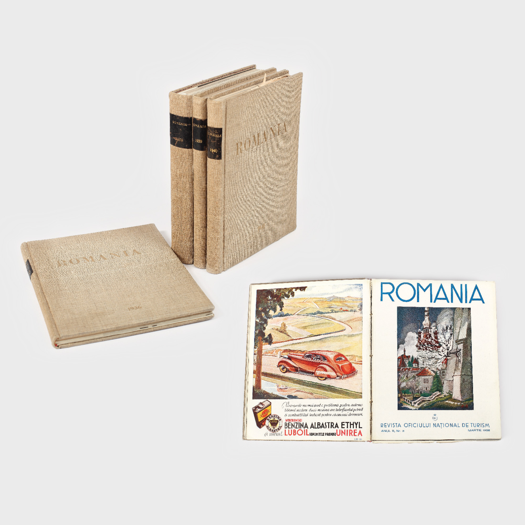 57. "România", Revista Oficiului Național de Turism, București, 1936, 1938, 1939, 1940, 4 volume
