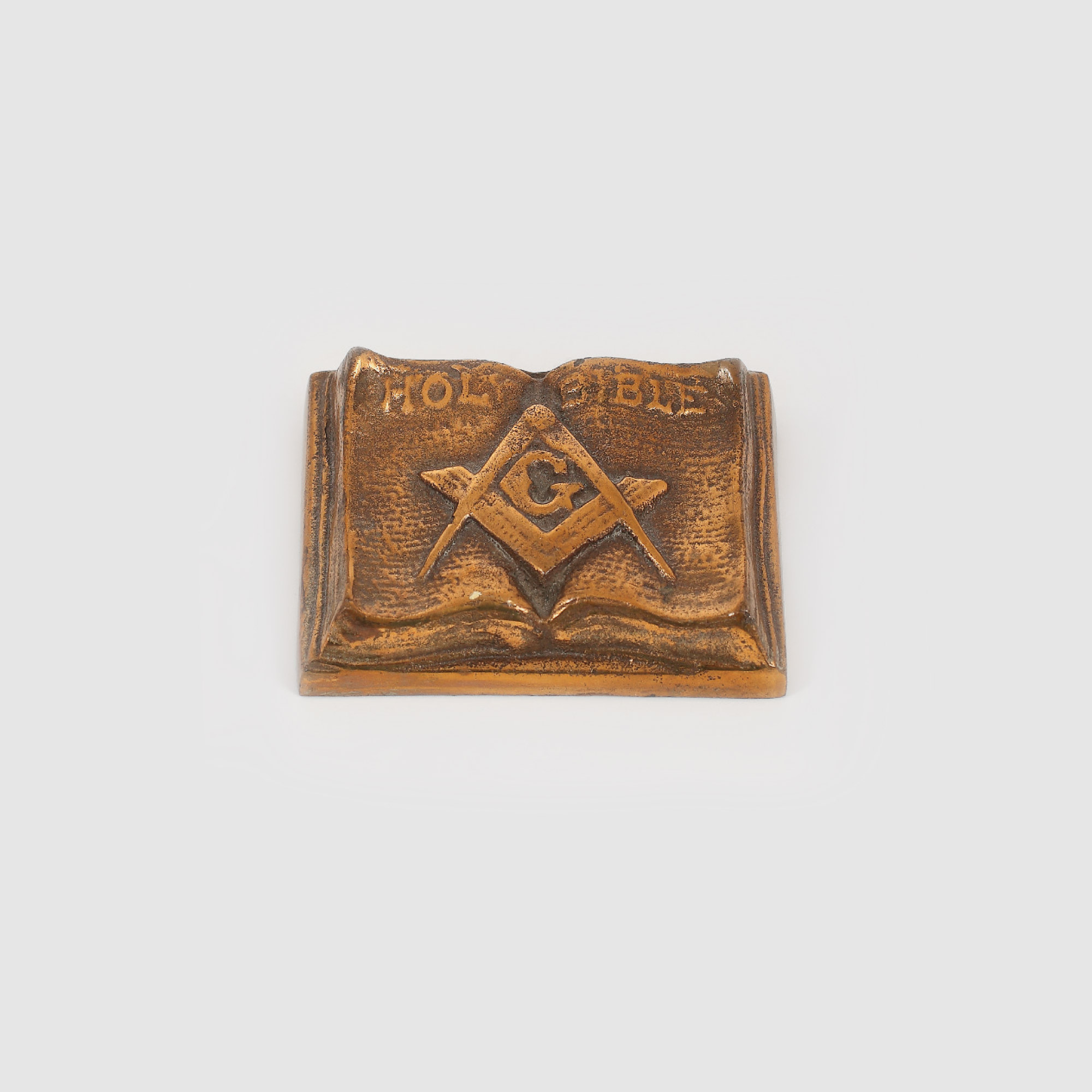 Presse papier carte deschisă (Biblia) cu însemne masonice.