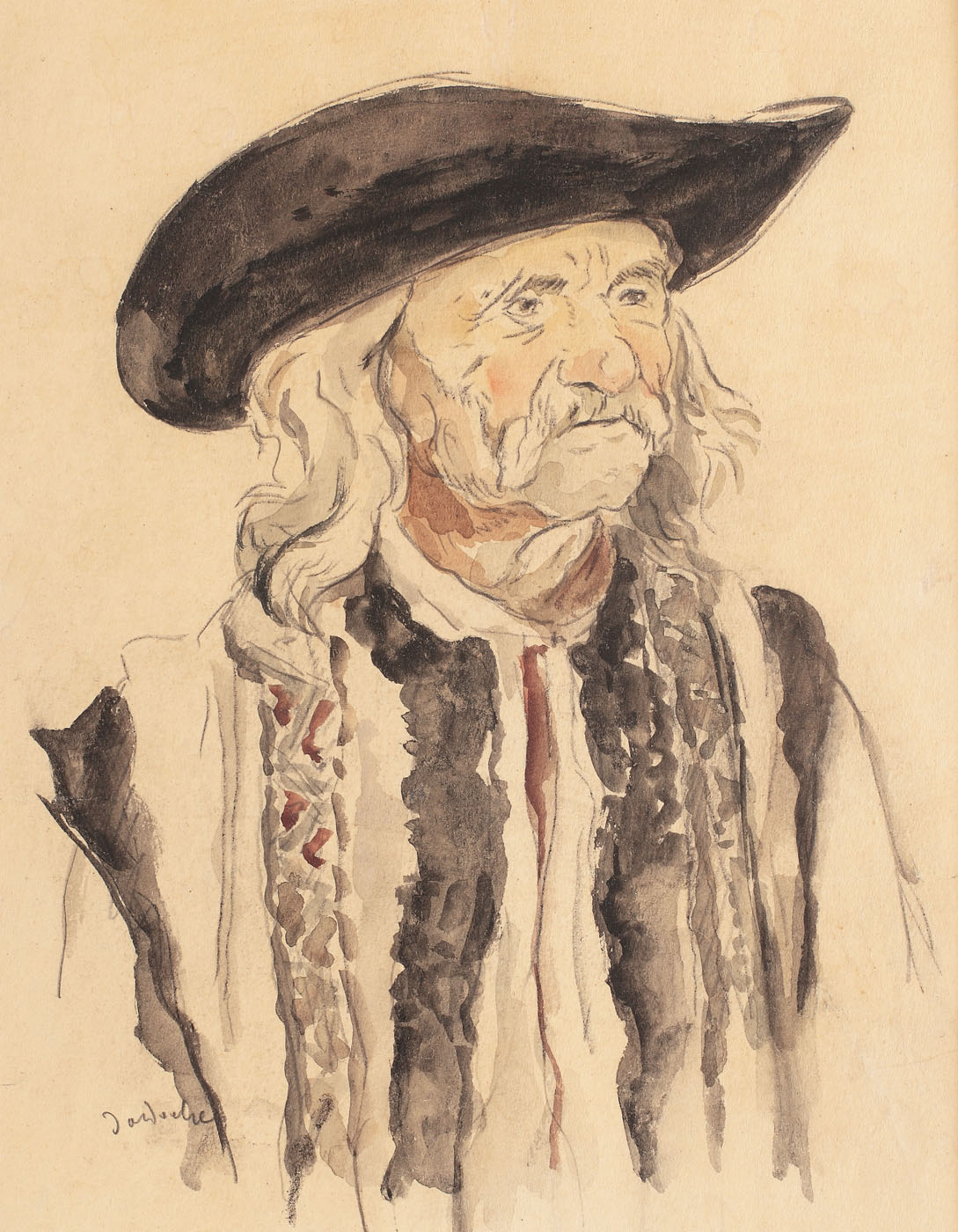 creion şi acuarelă pe hârtie