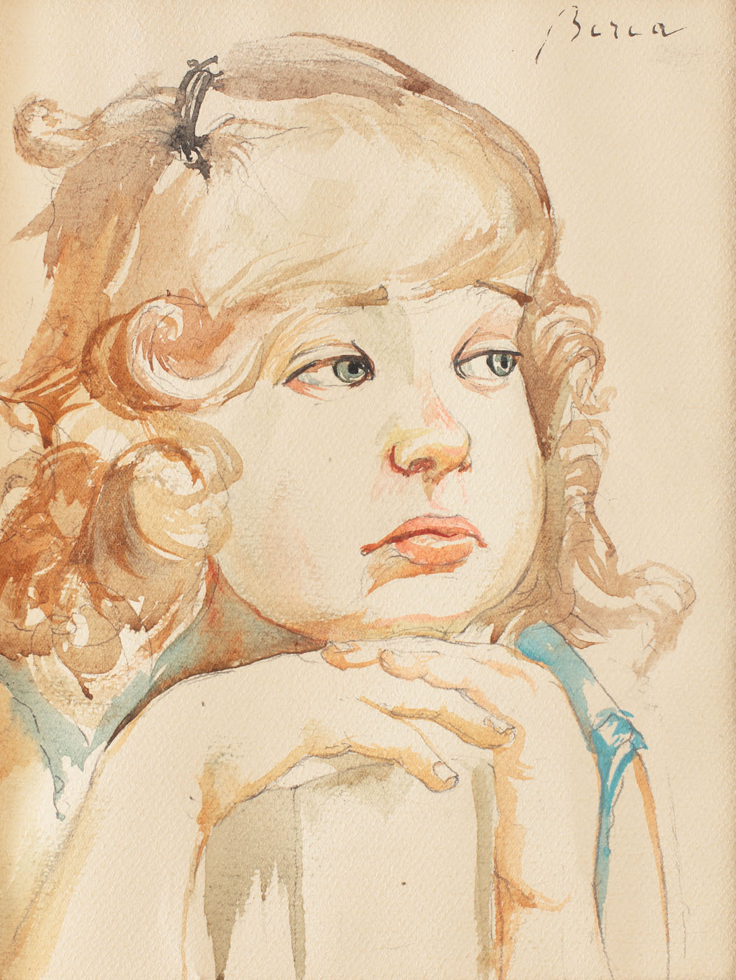 creion şi acuarelă pe hârtie lipită pe carton