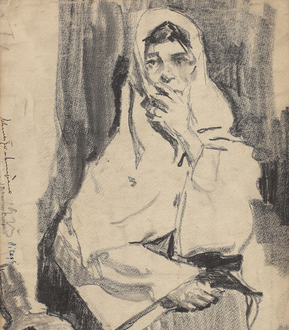 semnat, datat și localizat lateral stânga, în peniță, cărbune, pix şi în ştampilă de atelier, Schweitzer-Cumpăna, 1925, Pitești, RUDOLF SCHWEITZER-CUMPĂNA