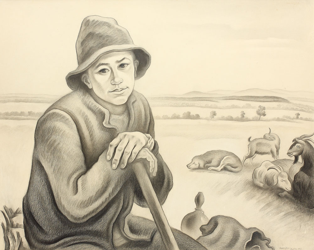Lazăr Zin se remarcă în istoria artei românești drept un desenator de excepție, interesat de o artă angajată social prin care și-a propus să pună în operă neajunsurile oamenilor simpli. Considerat ”o prezență stranie în epocă”, Lazăr Zin a fost activ în anii interbelici, perioadă pe care a dedicat-o în totalitate desăvârșirii carierei artistice. Lazăr Singer, naturalizat Zin, provine dintr-o familie de evrei foarte săraci, motiv pentru care a fost nevoit să lucreze încă din adolescență pentru a se întreține. A fost crescut în apropierea sinagogii Poradim din București, într-un mediu impregnat de hasidism. După absolvirea liceului la seral, în 1923, s-a înscris la Academia de Arte Frumoase din București la clasa de sculptură condusă de Frederic Stork. Din cauza condițiilor materiale precare este nevoit să abandoneze studiile după doi ani și se înscrie în armată. Din 1927 își reia studiile, optând de această dată pentru Școala liberă de pictură de la Baia Mare. Atras de efervescența mediului artistic format în localitate, artistul călătorește anual la Baia Mare, unde a realizat și cele mai importante lucrări, dintre puținele păstrate până astăzi. La începutul anilor `30 a călătorit în Franța, unde s-a înscris la Școala română de la Fontenay aux Roses, în apropiere de Paris. Mai târziu, Zin povestea că a fost exmatriculat după şase luni, de profesorul Nicolae Iorga, directorul școlii, pe criterii politice și etnice. Din dorinţa de a se perfecţiona, călătorește mult în străinătate: Siria, Grecia, Balcic, Polonia și Palestina. Vocația sa a fost aceea de portretist al oamenilor săraci și umili cu care empatizează din cauza lipsurilor personale. După cum mărturisea mai târziu într-o scrisoare, avalanșa legilor antisemite, promulgate începând din 1938, l-a încolțit la București, în timp ce pregătea o expoziție personală cu lucrări ce reprezentau o reflecție asupra naturii umane: portrete de evrei și arabi realizate la Zidul Plângerii (Ierusalim), portrete de țarani și mineri din Baia Mare sau din alte călătorii. Expoziția nu s-a materializat niciodată, iar cea mai mare parte a lucrărilor sale s-au pierdut odată cu casa și atelierul său, în timpul bombardamentelor din 1944. Lucrarea Ciobănaș, realizată în jurul anului 1928, la Baia Mare, face parte dintr-o serie tematică cu țărani, din care se mai păstrează câteva lucrări la Muzeul Național de Istorie al României. Portretul tânărului ciobănaș, realizat în spirit clasicizant, se remarcă prin interesul pentru individualizare psihologică. Este evidentă dorința artistului de-a comunica privitorului nostalgica melancolie a personajului portretizat. Tratarea sculpturală a materiei într-un desen riguros, precis, perfect stăpânit nu permite nici un fel de denaturare sau discuție pe marginea rigorii compoziției; direcționând atenția spre tensiunea interioară profundă a personajului. Lazăr Zin a fost un pictor al omului, un artist sincer preocupat de problemele oamenilor săraci cărora le-a dedicat întreaga sa creație. Deși longeviv, a lăsat în urmă puține lucrări, toate de mare valoare plastică. Destinul său artistic nu s-a împlinit, Zin fiind una dintre victimele celor două regimuri totalitare din România. Guvernarea antonesciană l-a adus în imposibilitatea de-a lucra și expune, iar faptul că a fost martor la Rebeliunea Legionară l-a marcat pentru tot restul vieții. “În România chiar și SS-iștii erau luați prin surprindere și uneori îngroziți de ororile pogromurilor la scară largă.” (1) Din 1942 a fost condamnat la o muncă silnică umilitoare, care l-a afectat psihic pentru tot destul vieții: dezafectarea cimitirului evreiesc din strada Sevastopol. Deși copleșit de impietarea distrugerii unui cimitir, artistul a reușit totuși să documenteze prin 53 de desene pietrele funerare distruse, majoritatea monumente istorice din secolele XVII și XVIII. După război, rămas fără locuință în urma bombardamentelor din ‘44, s-a mutat într-o garsonieră din Drumul Taberei unde nu avea spațiu să lucreze. A desfășurat activități de documentarist, desenând monumente din cimitire evreiști și documentând sinagogi dărâmate de comuniști. A murit singur și neîmplinit, la căminul de bătrâni Moses Rosen din București. (V.I.) (1) Hannah Arendt, ”Eichmann la Ierusalim. Raport Asupra banalității răului”, Ed. Humanitas, București, 2007, p. 230