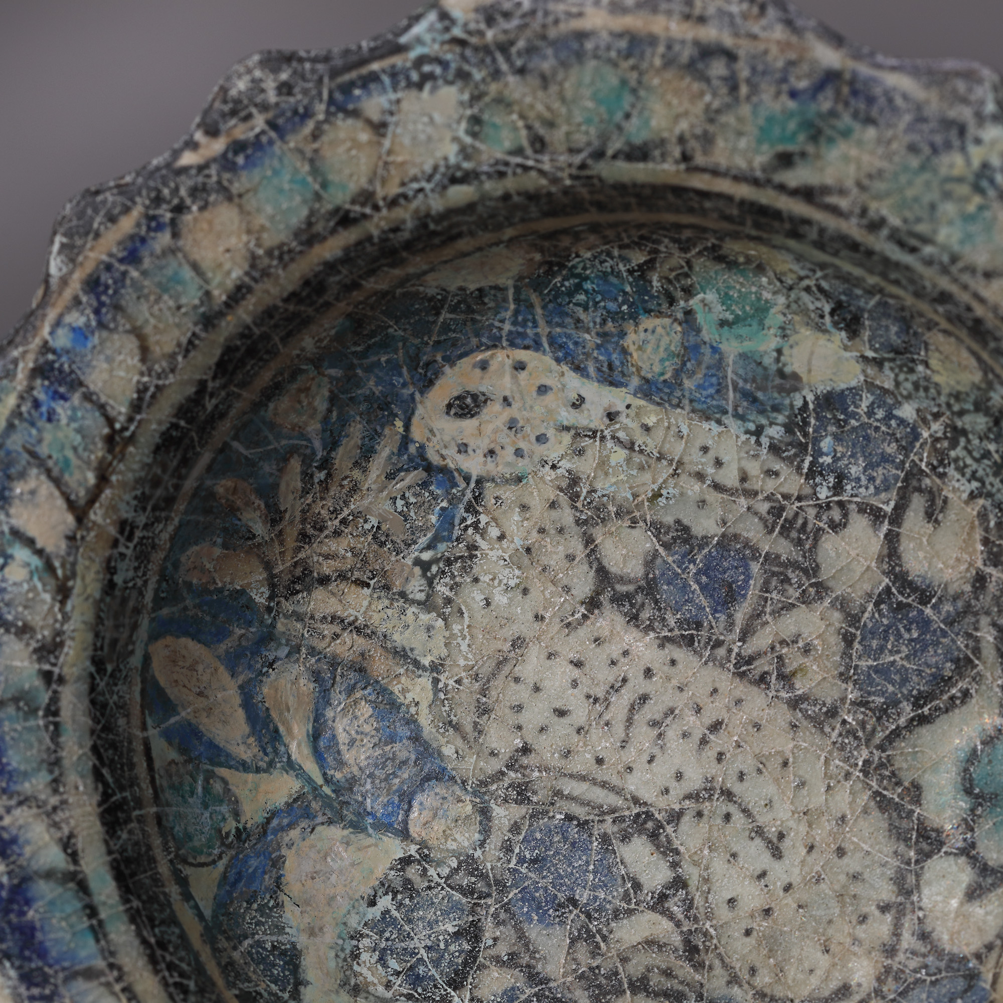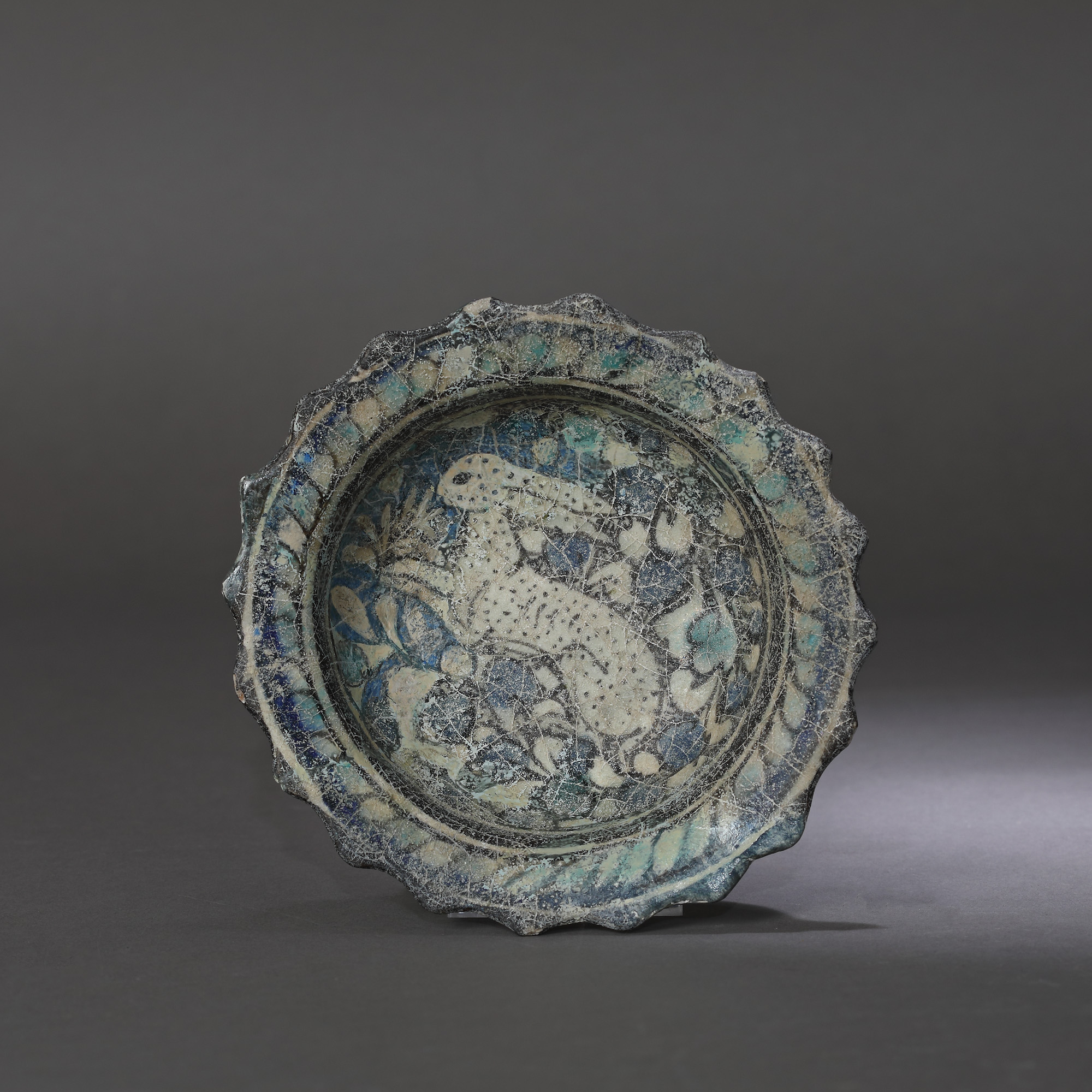 47IT. Bol persan din ceramică smălțuită, decorat cu scenă de vânătoare (un iepure alergând), cca. 850 ani vechime, sec. XII (însoțit de raport de expertiză)