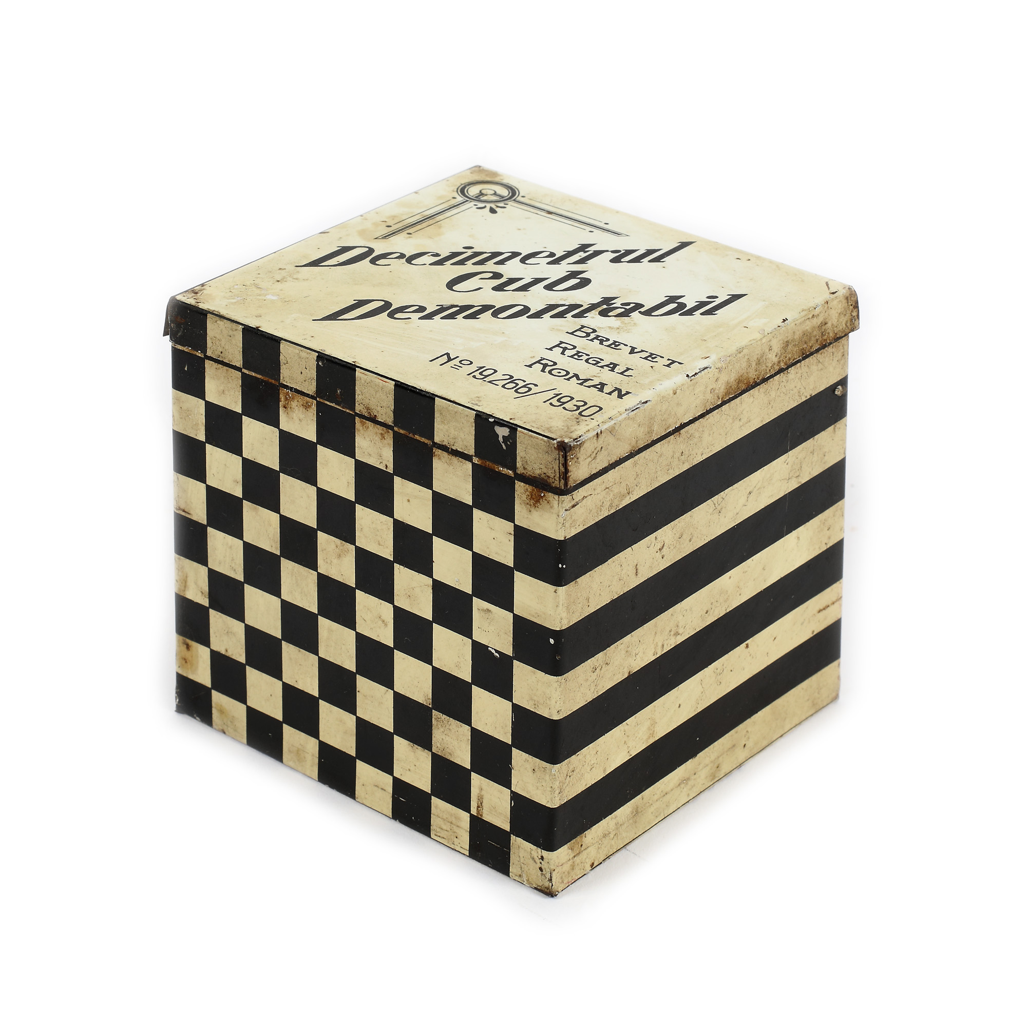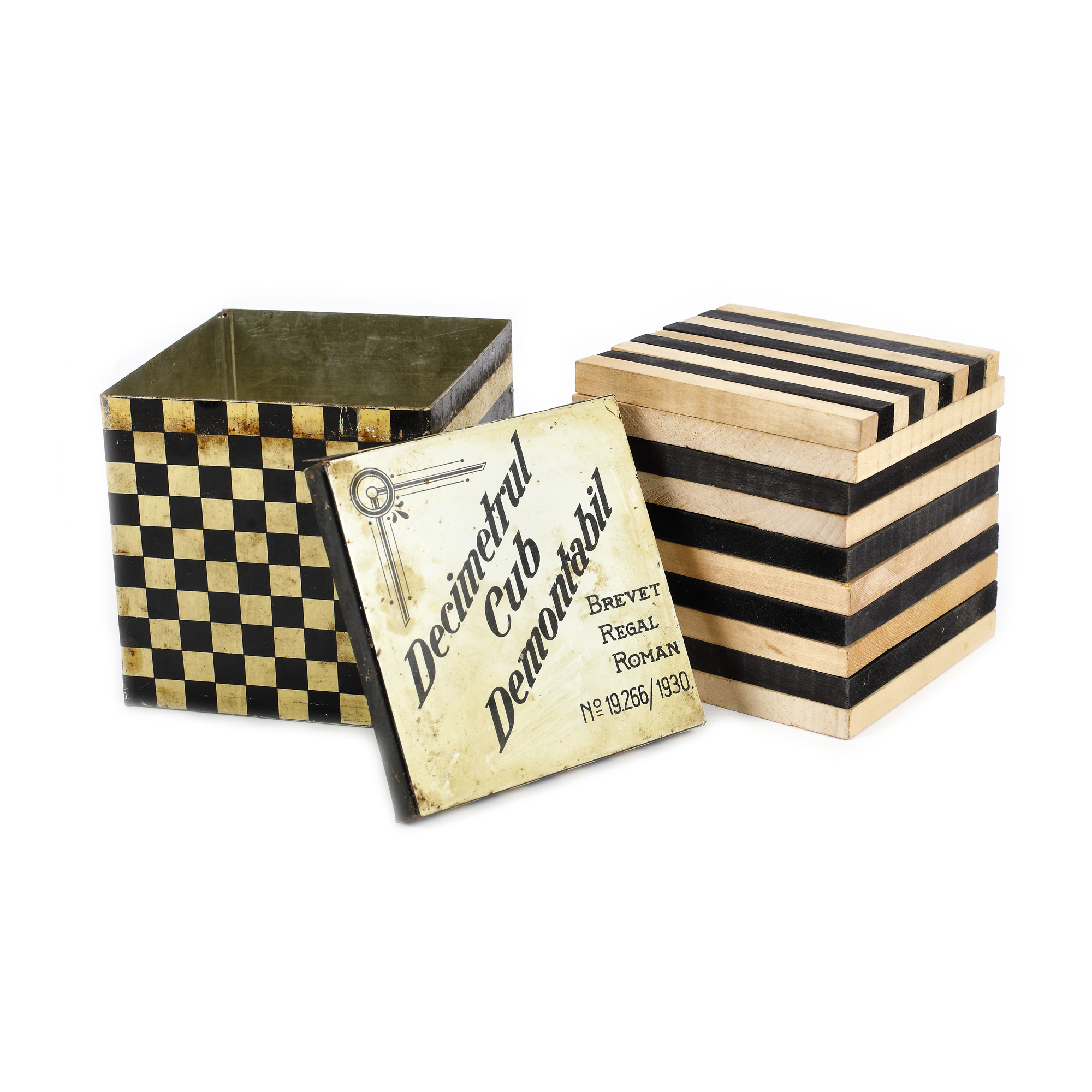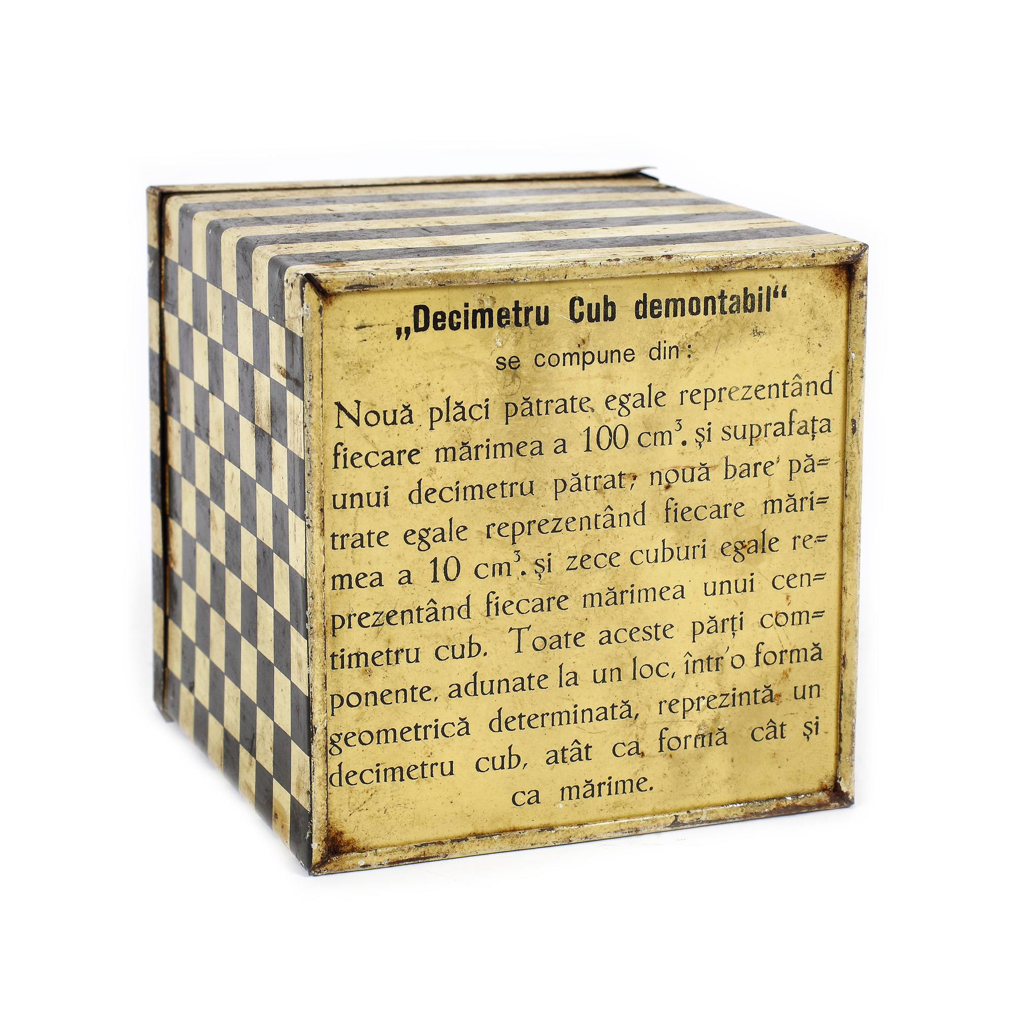 102. Decimetru cub demontabil, pentru uz educațional, purtând brevet regal român din 1930