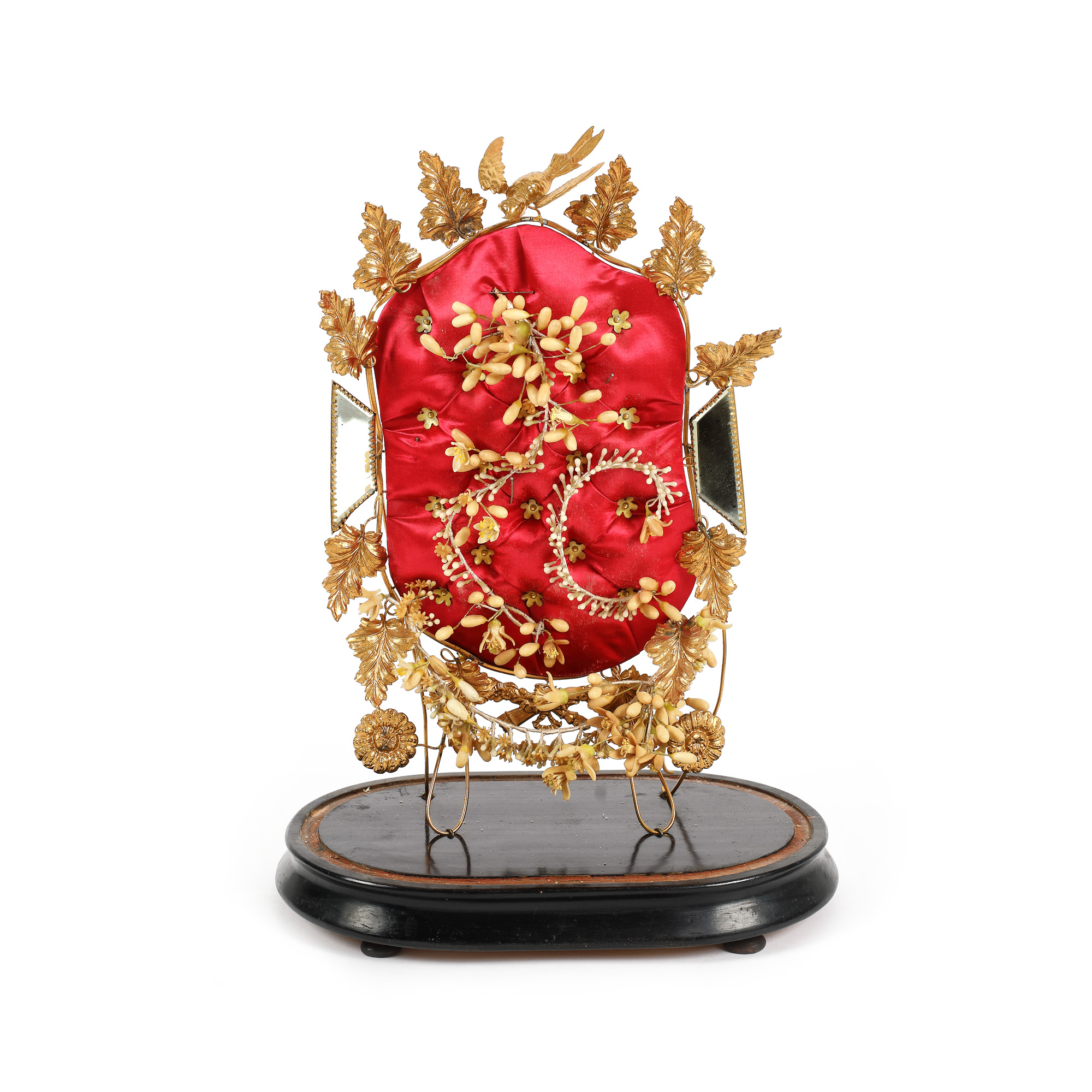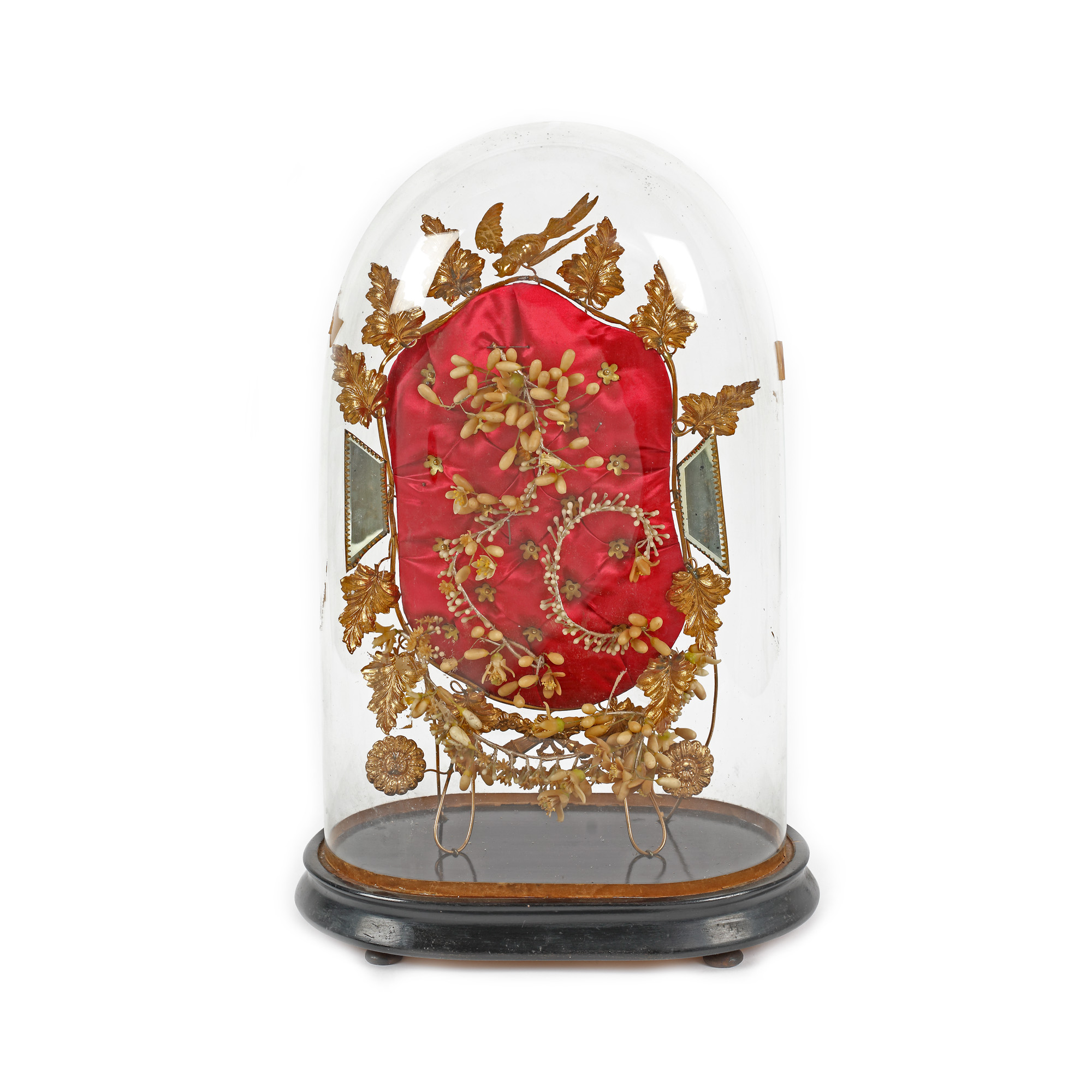 95. Glob de nuntă - interesantă compoziție dăruită mirilor, alcătuită din elemente florale îmbrăcate în foiță de aur, Franța, cca. 1890-1920