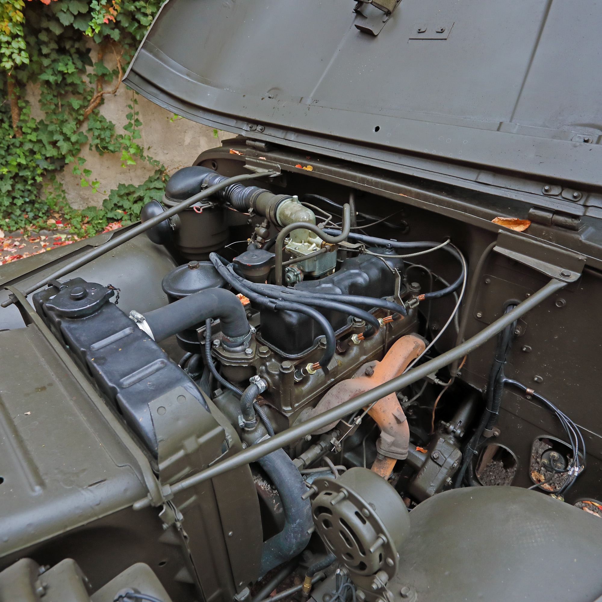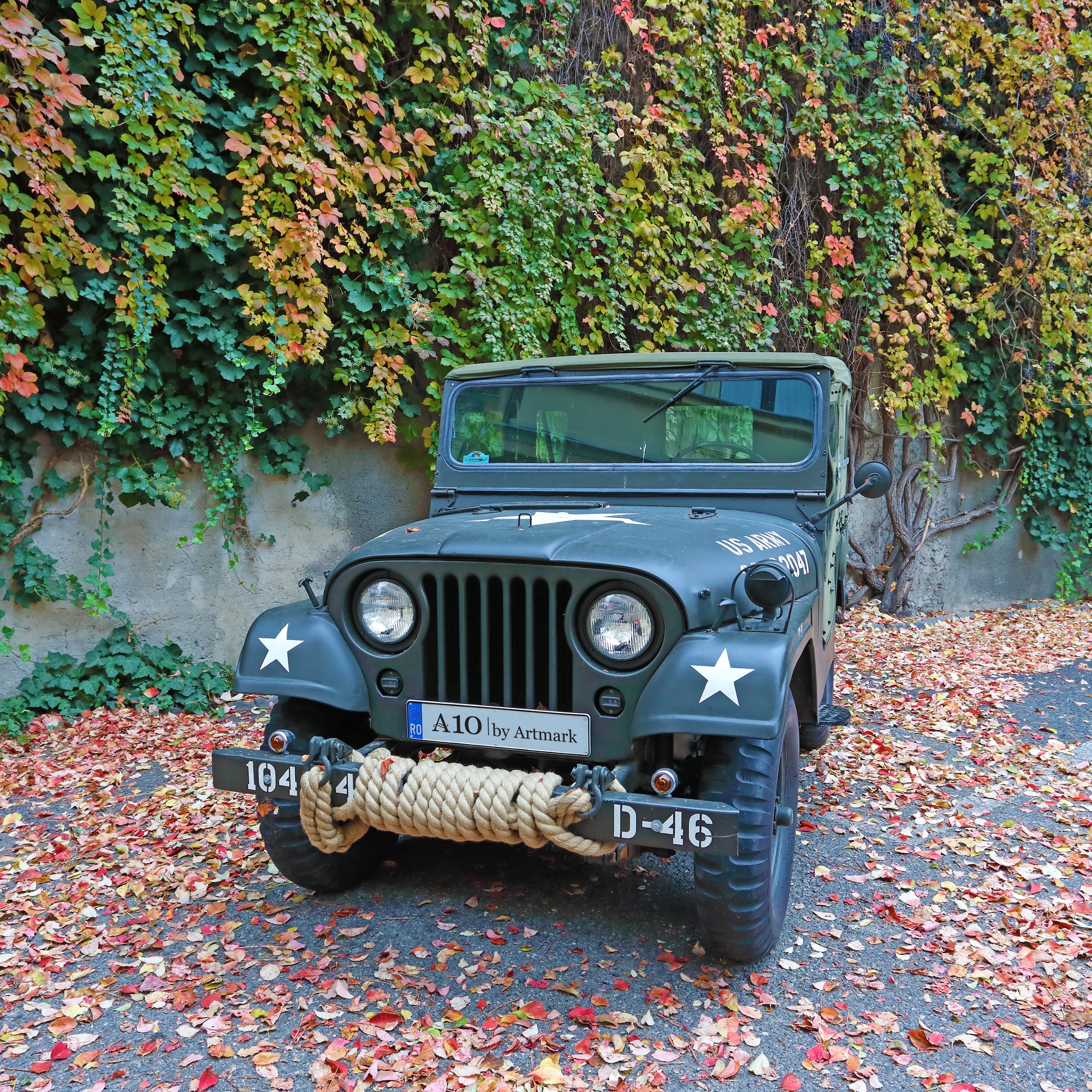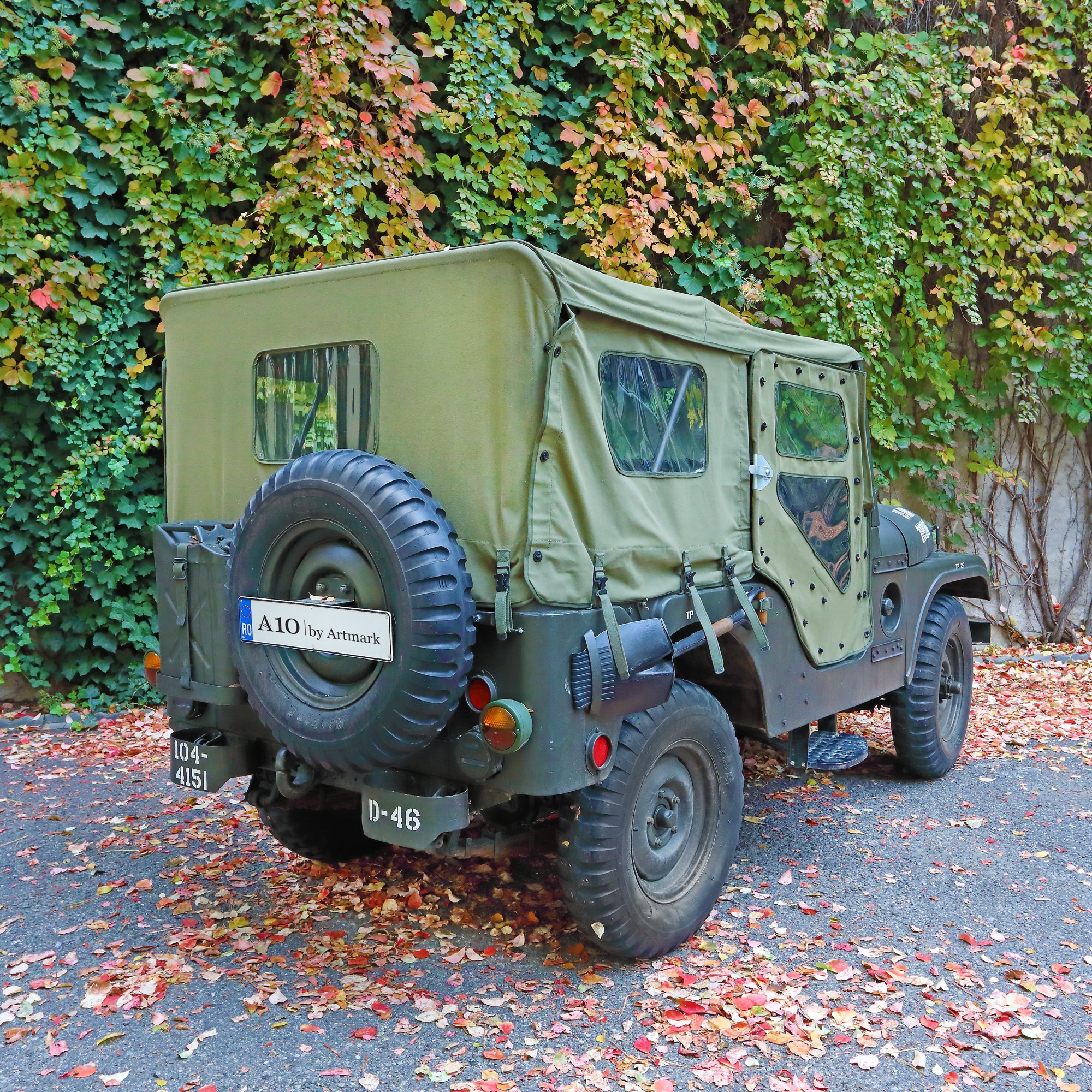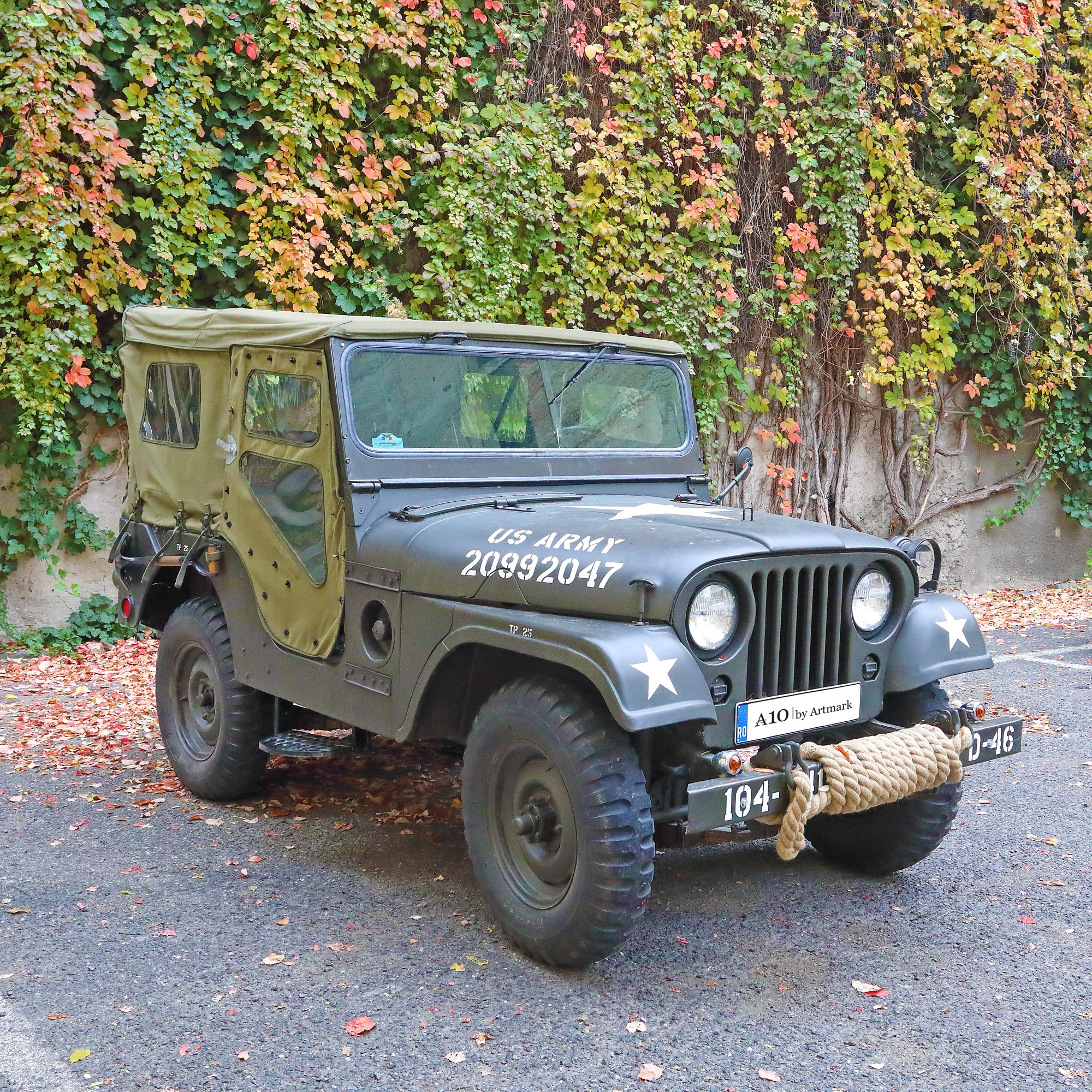 Willys 1956 model CJ5 M38A1, mașină de teren 4x4. Are 196 de mile la bord. Însoțită certificat de inspecție tehnica periodică (ITP) până pe 19/10/2022. RCA pe un an 31.10.2020-31.10.2021. Rovinietă pentru rețeaua de drumuri din România începând cu data de 03.10.2016, CNADR cu nr. 92/61448. Atestat ca vehicul istoric de la Retromobil România, scutit de impozit. Construită între anii 1952-1971 de Willy and Willy Motors, pentru dotările armatei Statelor Unite ale Americii. Instalație electrică nouă, combustibil benzină. Dotări: lopată, secure, canistră de combustibil și roată de rezervă. Însoțită de cartea de service, schema motorului și piese 14 ton 4x4 Utility truck M381A. Are prelată nouă și două uși rabatabile, cutie cartușieră, stație de radio emisie profesională, extinctor și dosar cu toate piesele și serviciile executate.