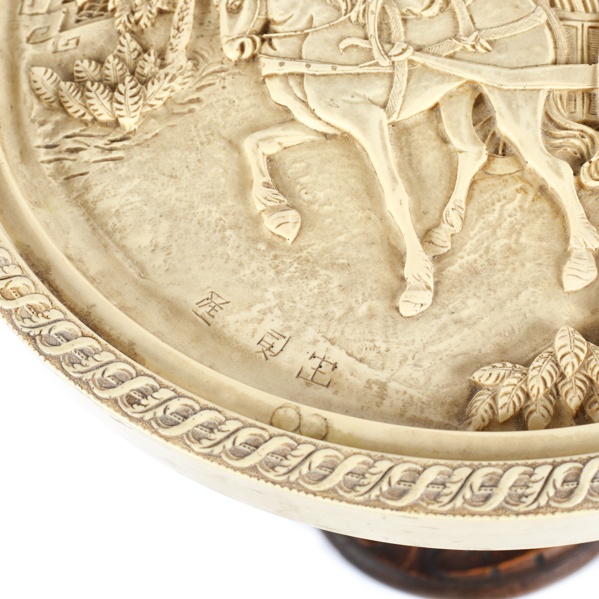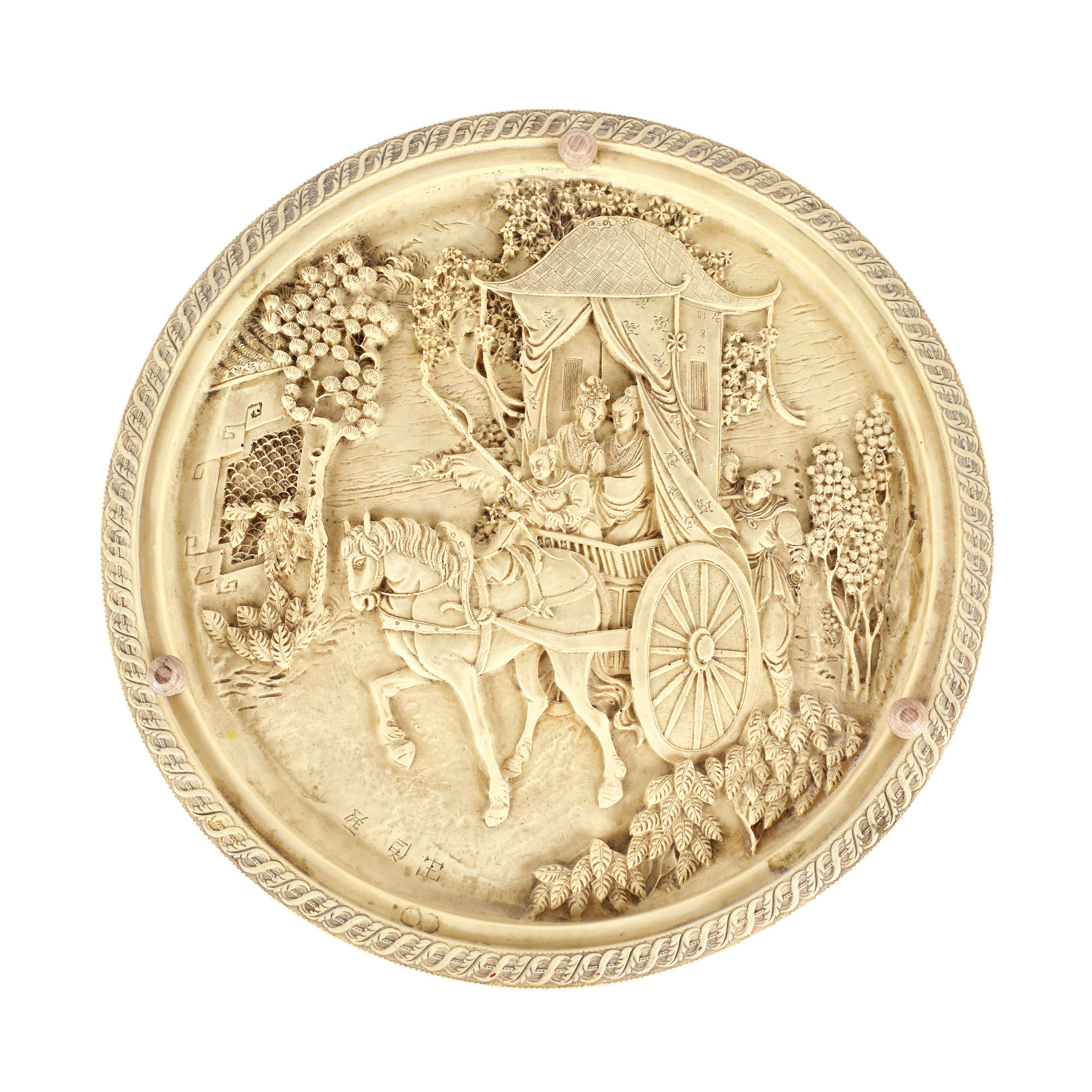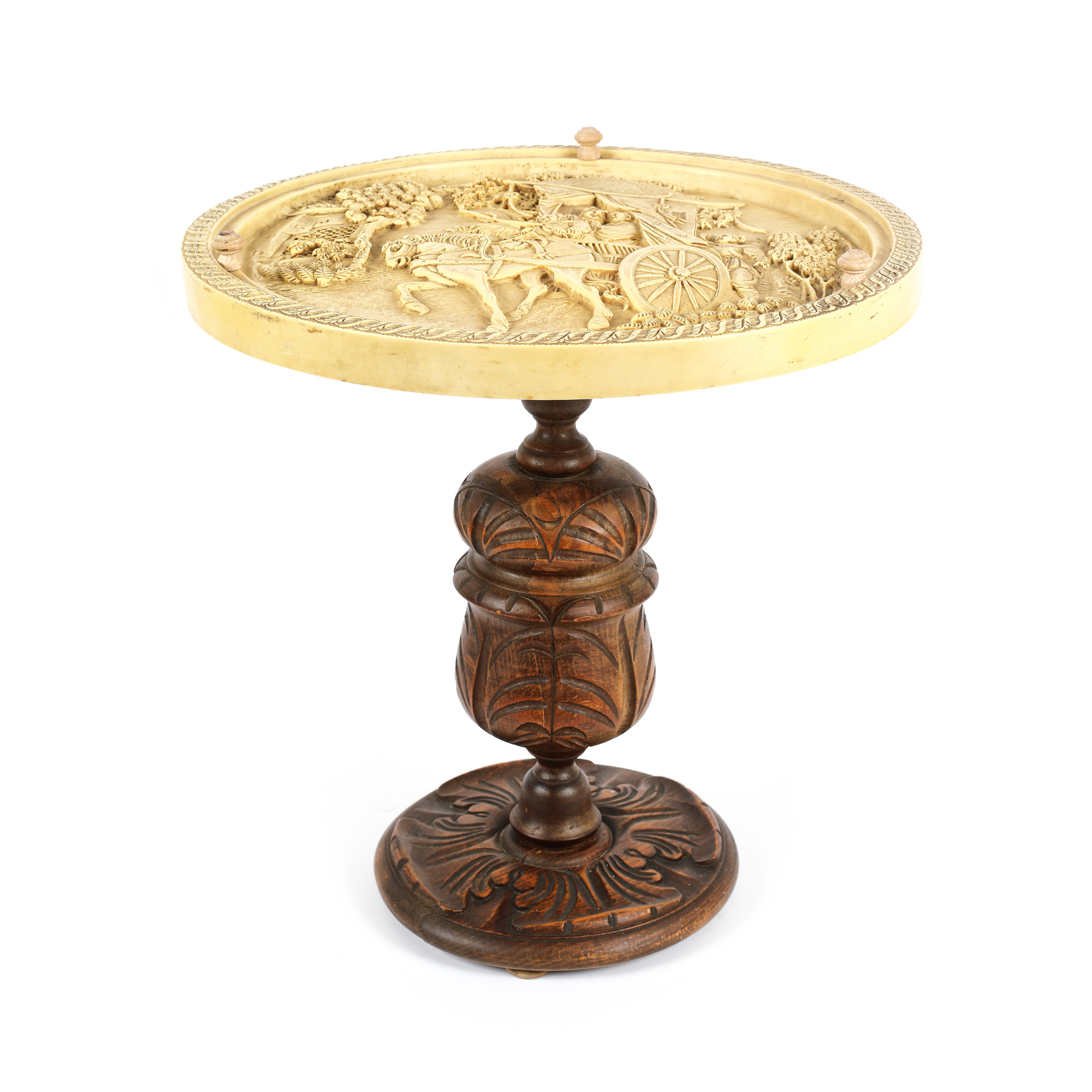 101. Măsuță de cafea cu blat din os sculptat, decorată cu o scenă de la curtea imperială a dinastiei Qing, China, mijlocul sec. XX