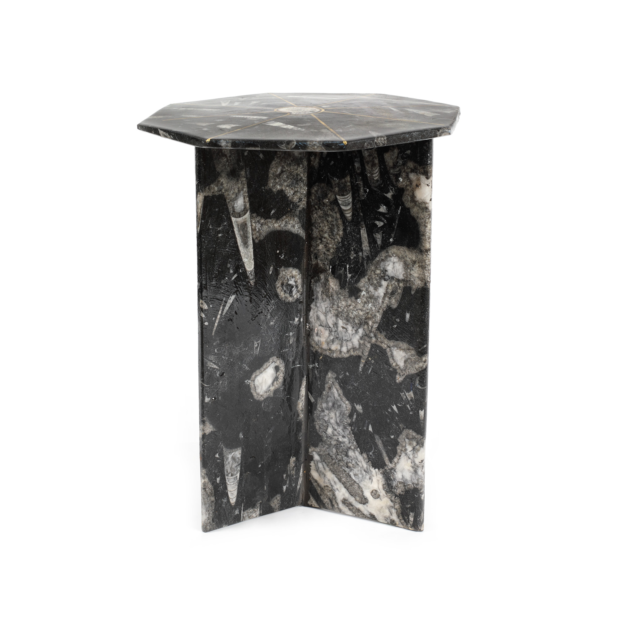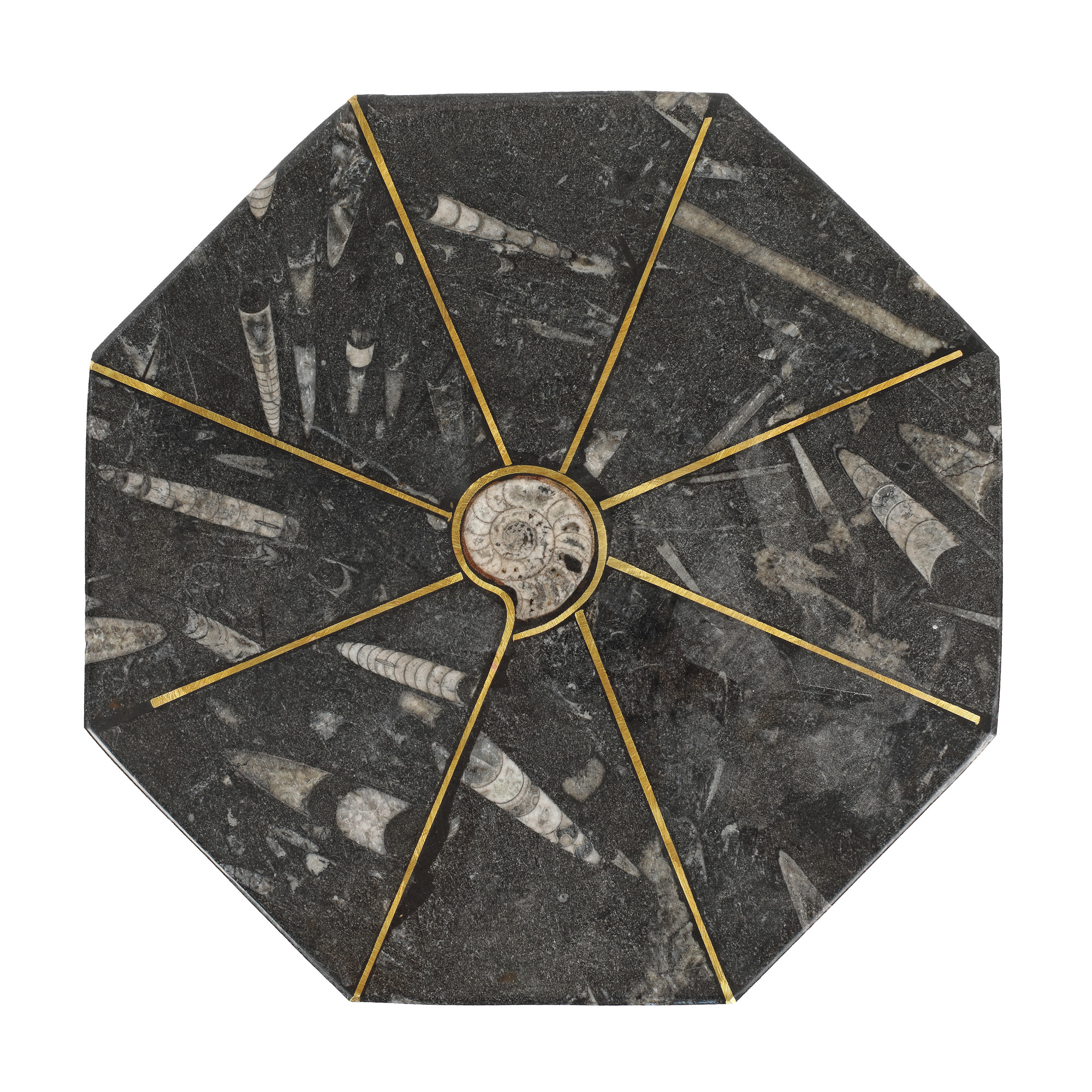 99. Măsuță pentru ceai, din marmură neagră cu incluziuni fosilizate, Maroc, mijlocul sec. XX